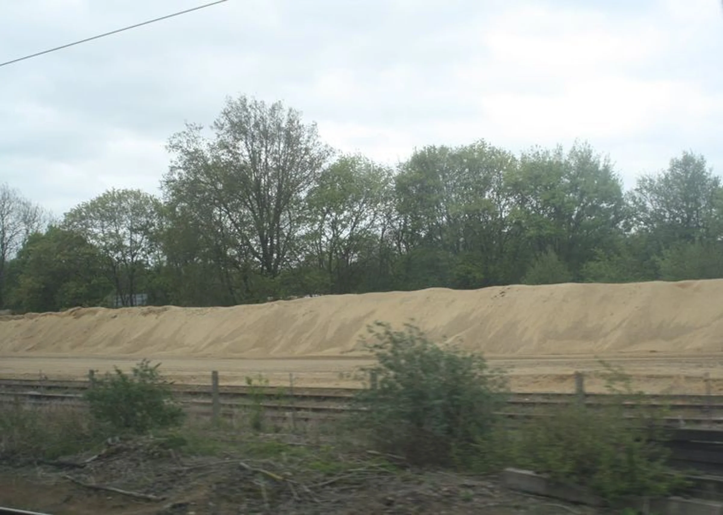 Photograph of sand heaped in the station yard at Marks Tey.