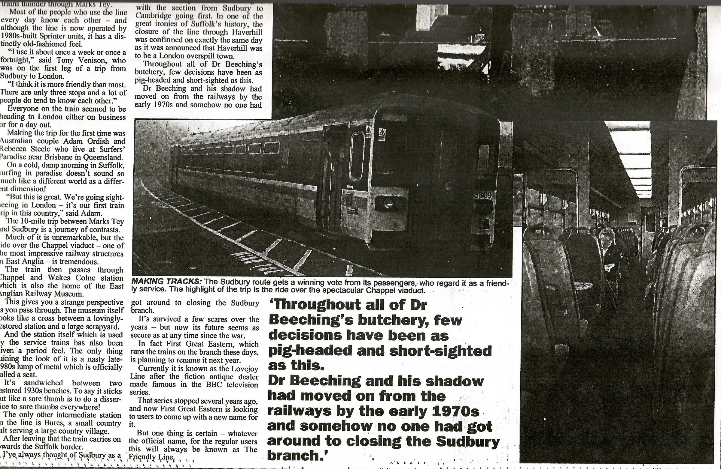 Newspaper photographs and article regarding the Sudbury branch line from Marks Tey station.