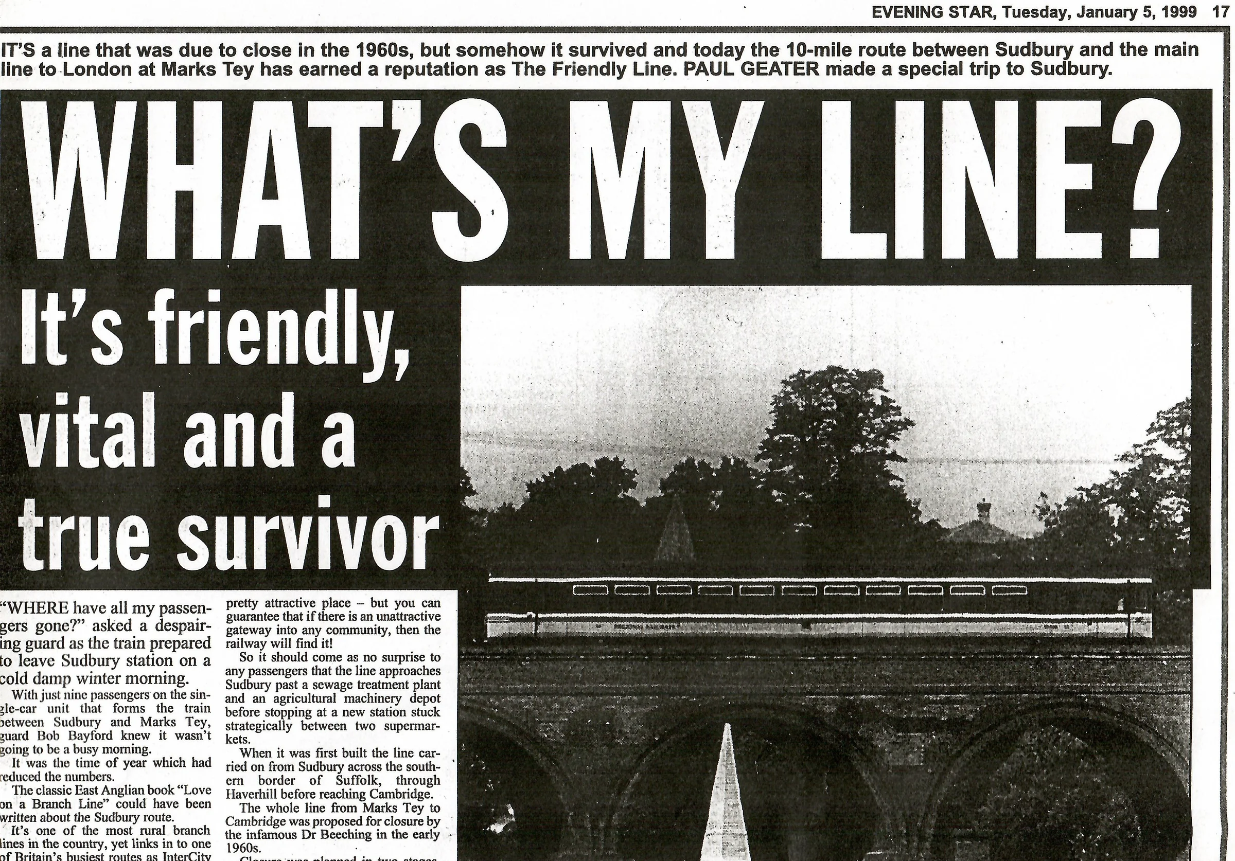 Newspaper photograph and article reporting on the Sudbury branch line from Marks Tey station.
