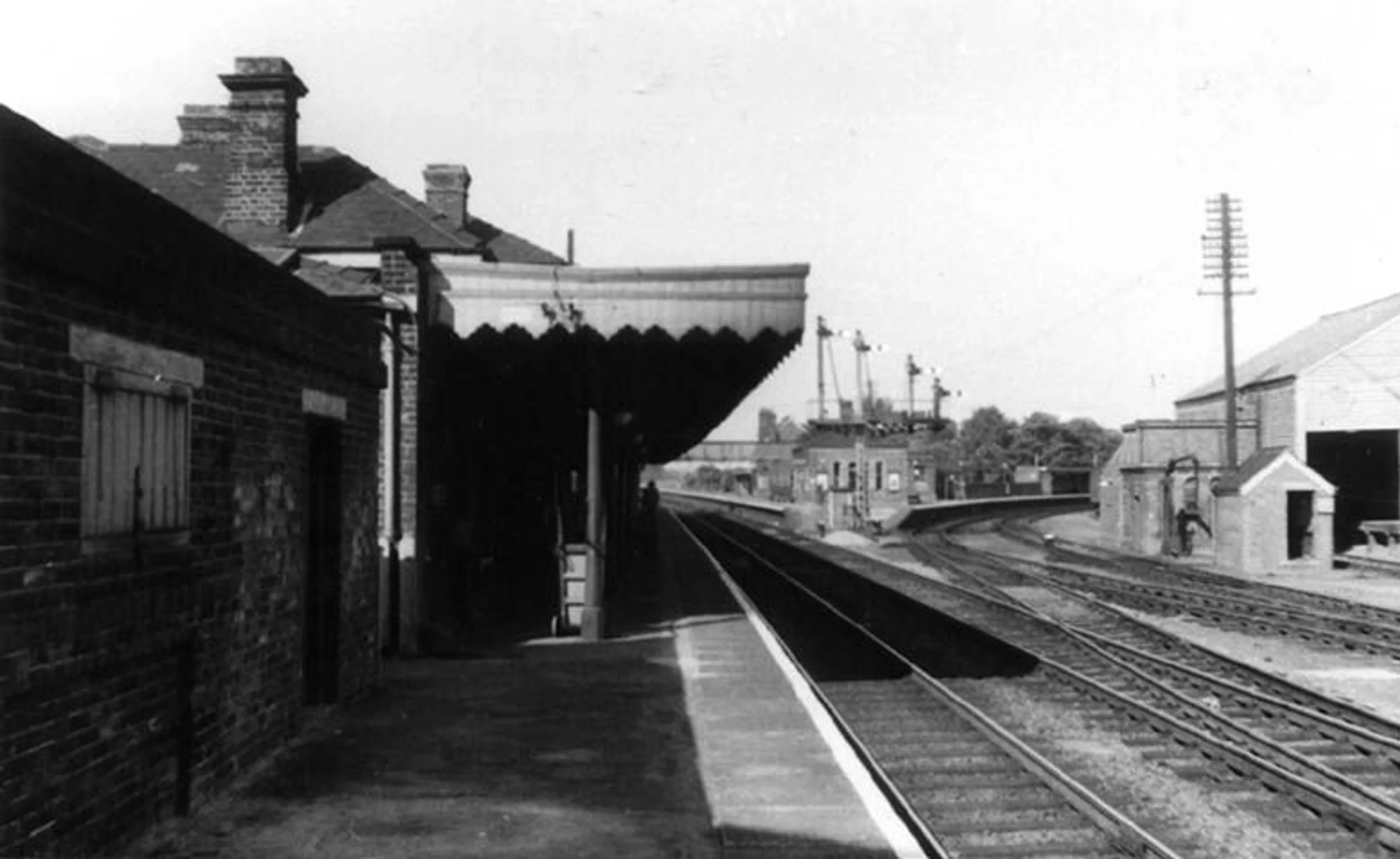 Historic photograph of the station looking east on platform 1.