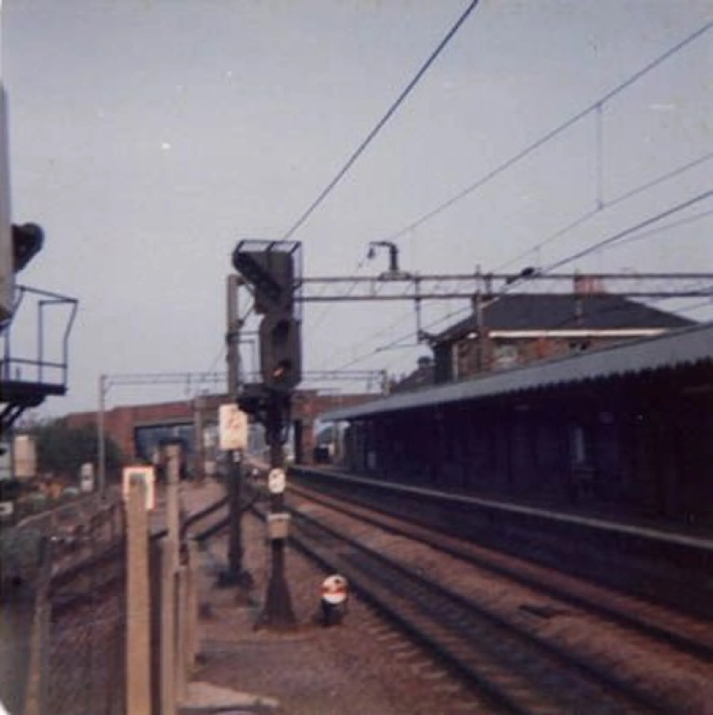 Photograph of the signals at the end of platform 2, looking east.