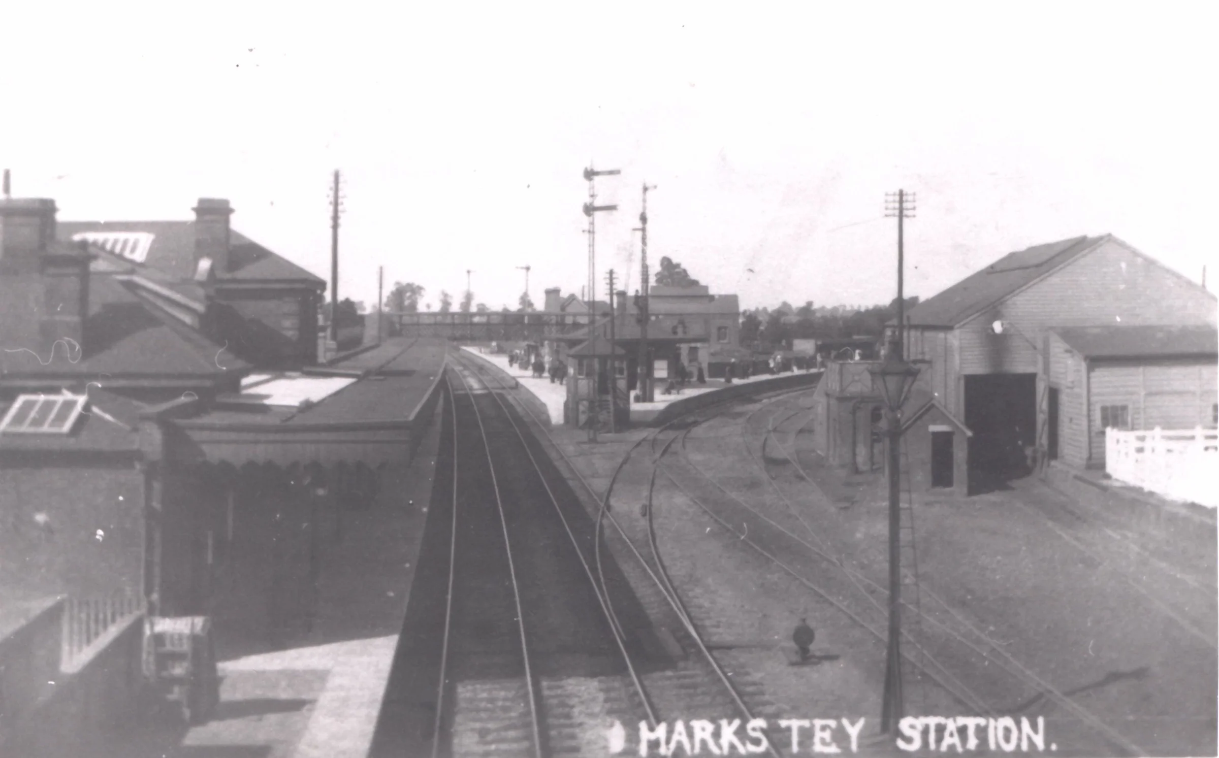 Historic published photograph of Marks Tey station looking west from the bridge at North Lane.