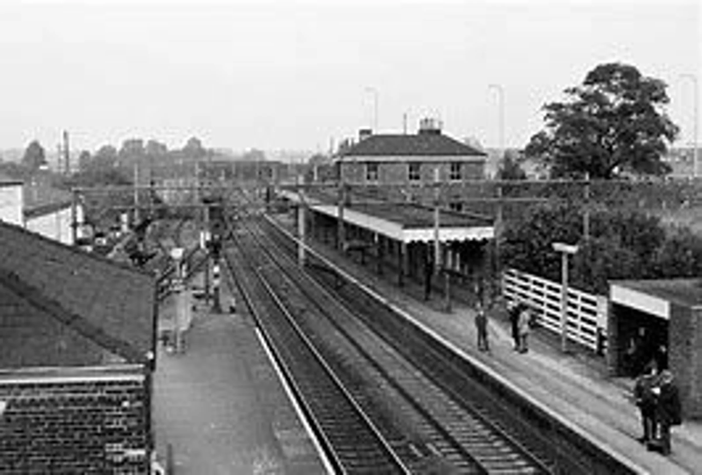 Historic photograph looking west from the footbridge at Marks Tey station.