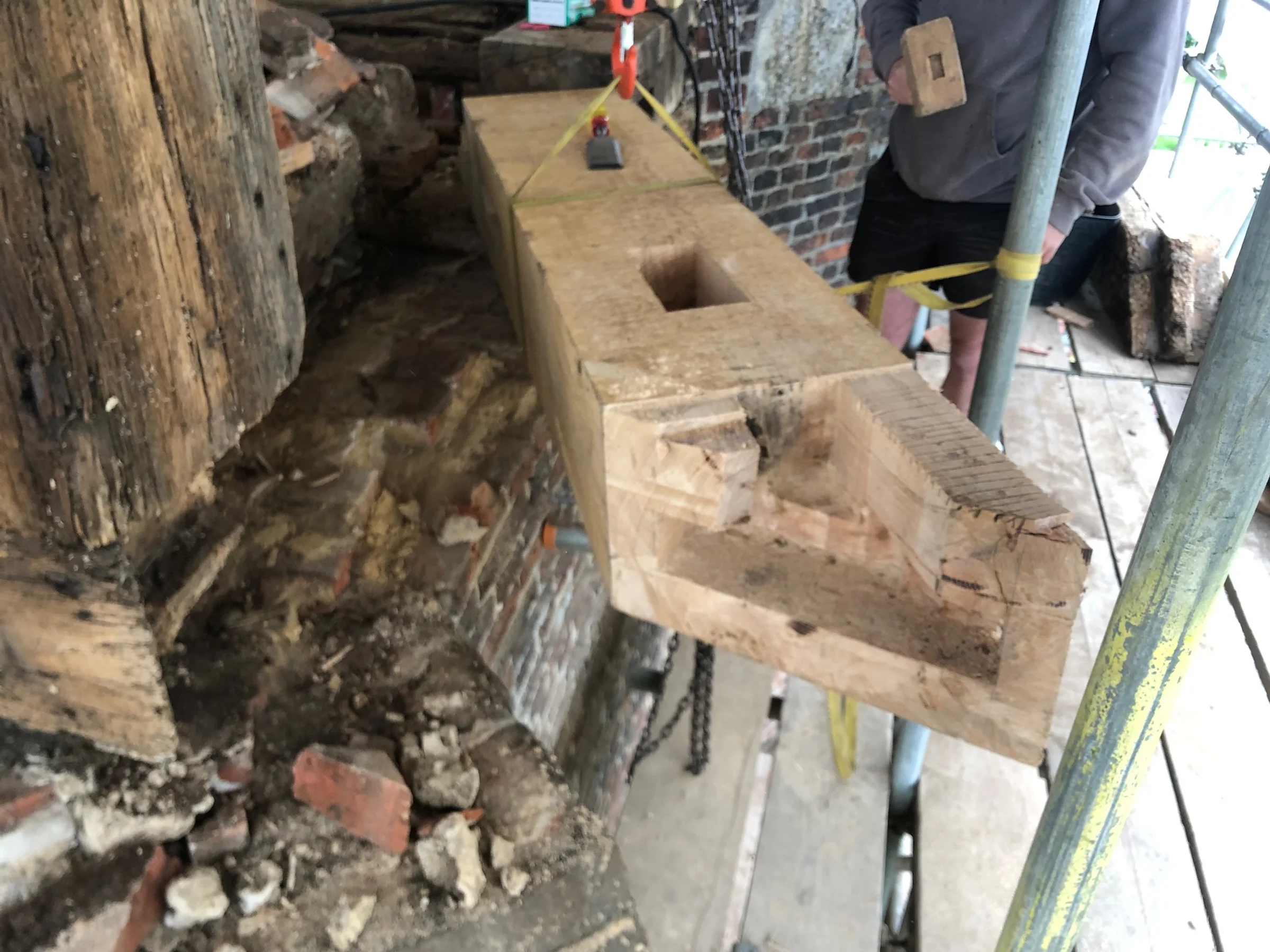 St Andrews Church Spire restoration, replacement oak insert for SW plate repair