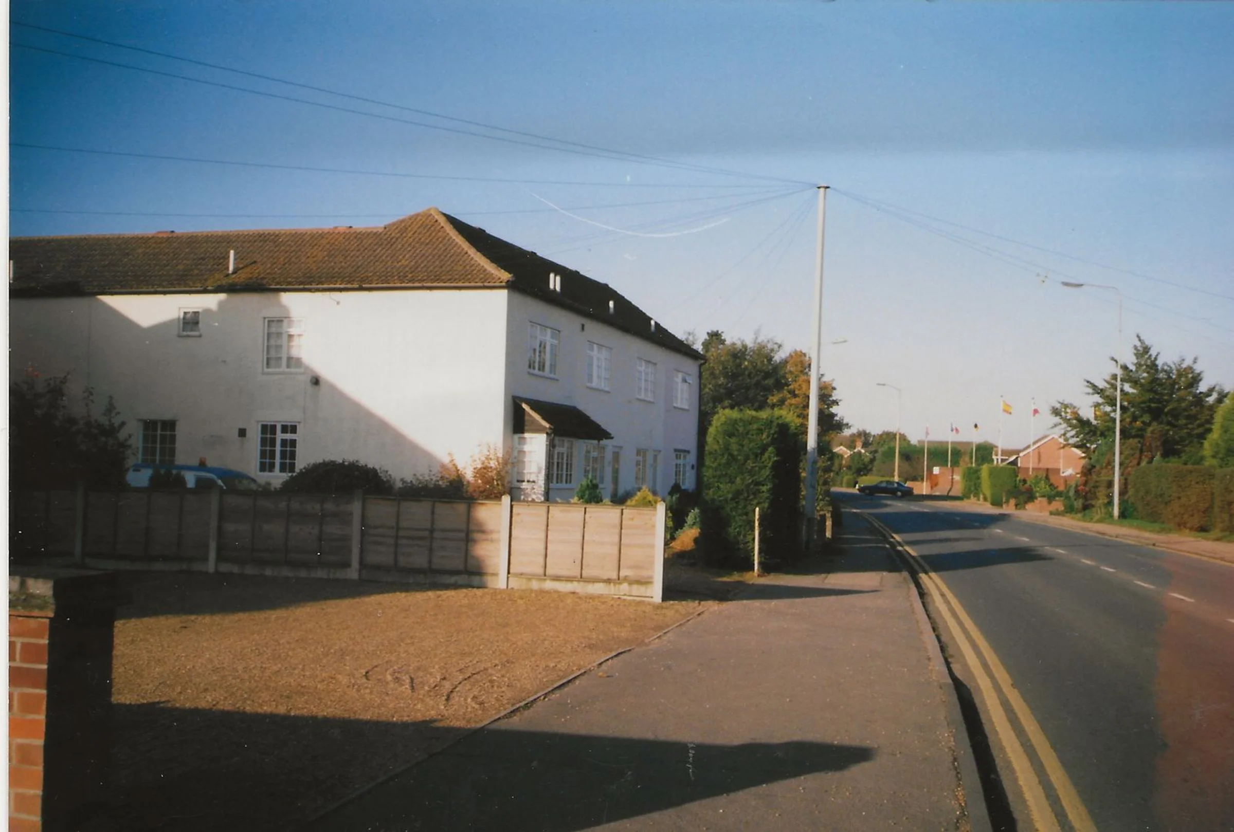 A recent photo of Copford Court which was formerly known as Rices Cottages. On the other side of the road the flags of the Marks Tey Hotel can be seen.
