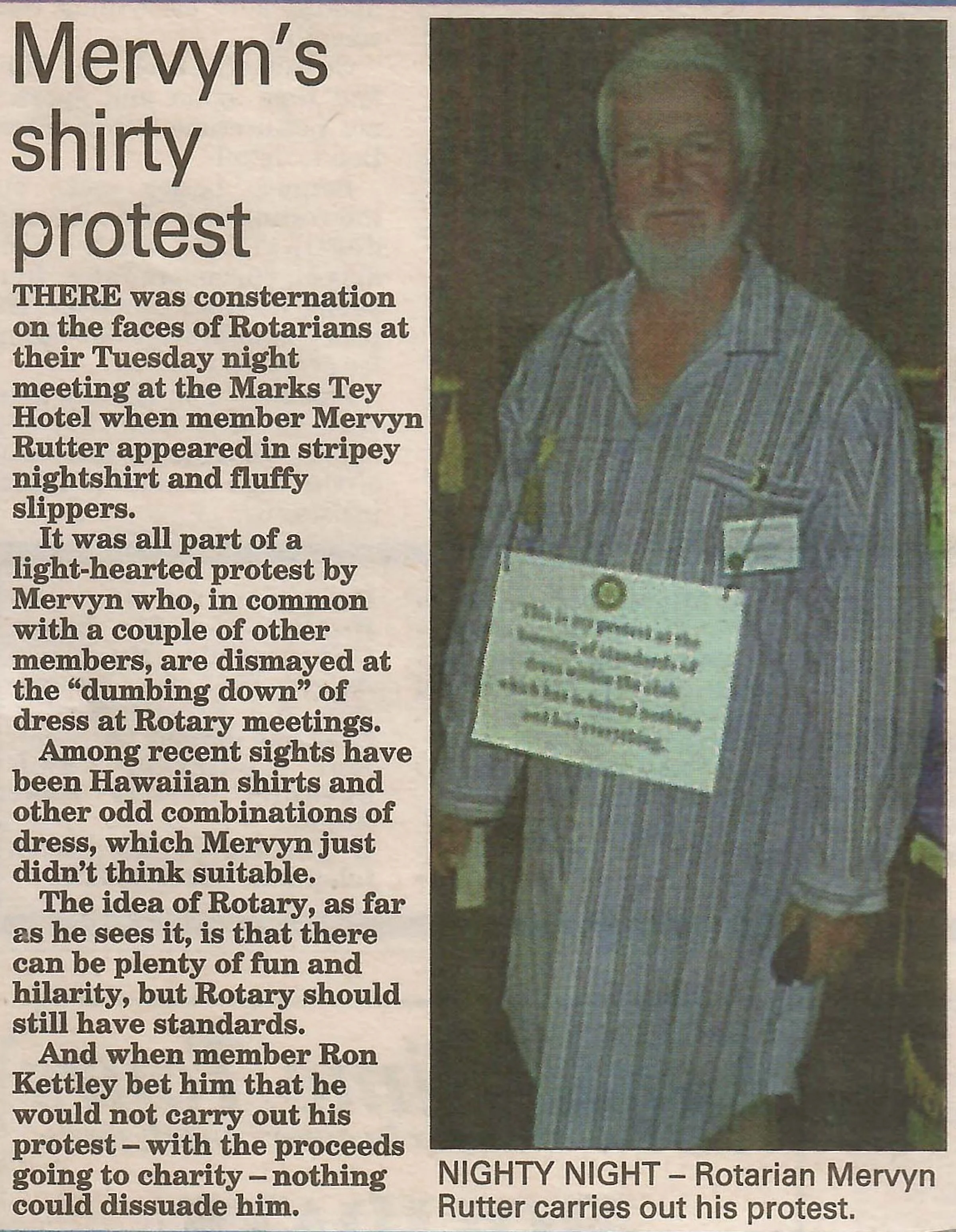 Mervyn's shirty protest