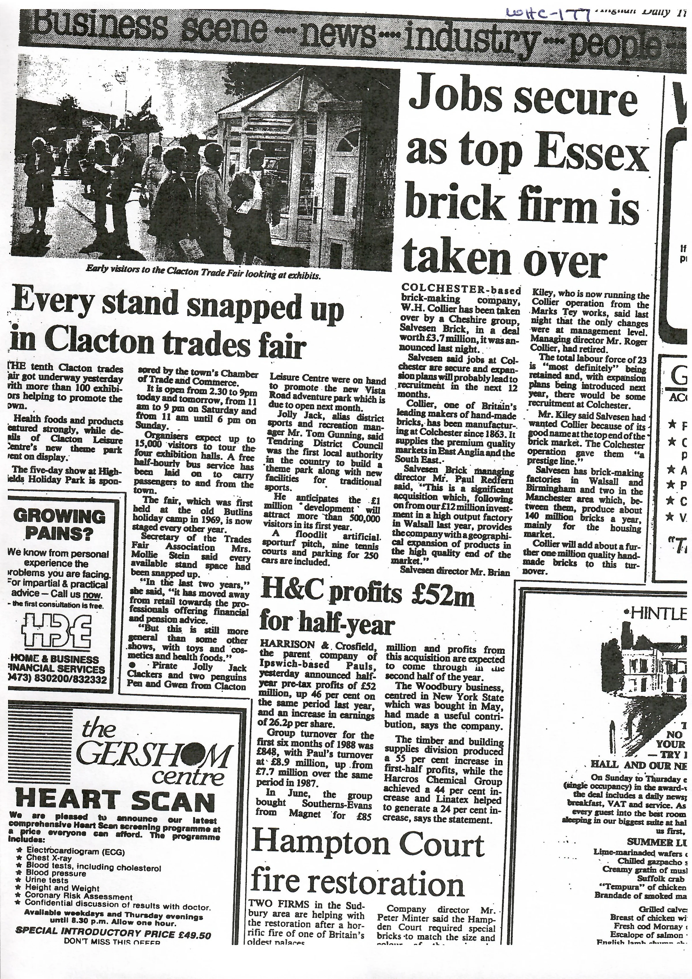 Article describing the sale of W H Collier brickworks.