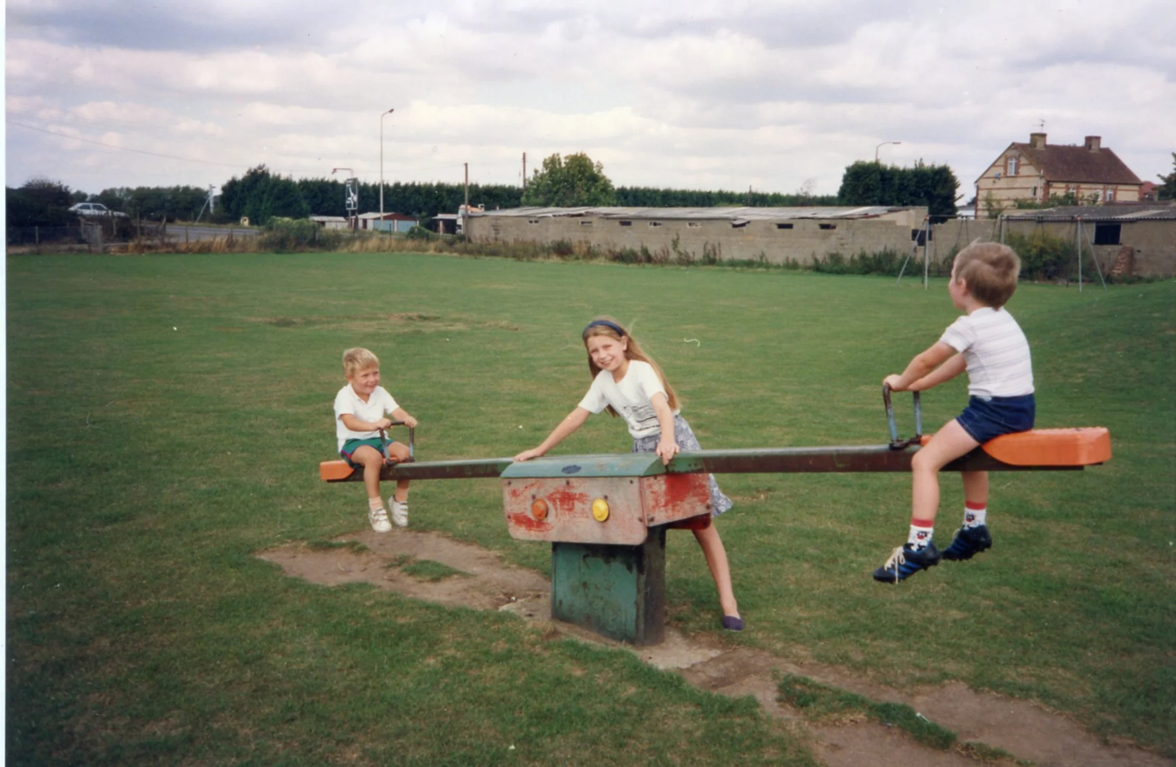 The see-saw which used to be in the play area on the playing field near to where the Parish Hall now is. The view is looking towards Coggeshall Road roundabout in August 1990.