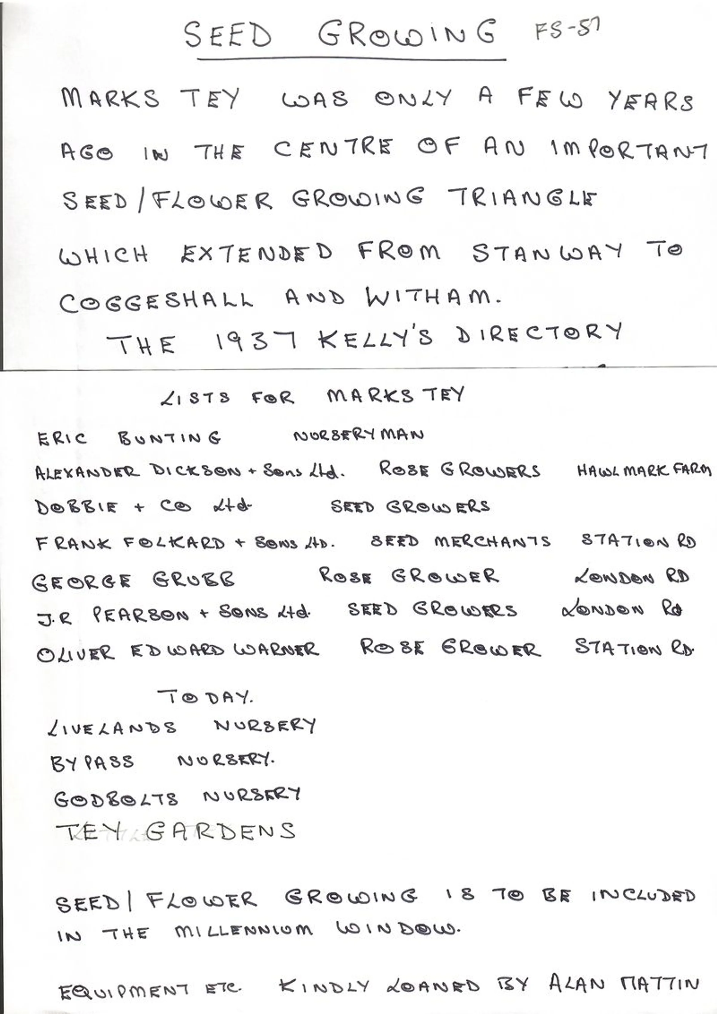 Some information comparing nurseries in Marks Tey in the 1937 Kelly's Directory with what there was more recently.