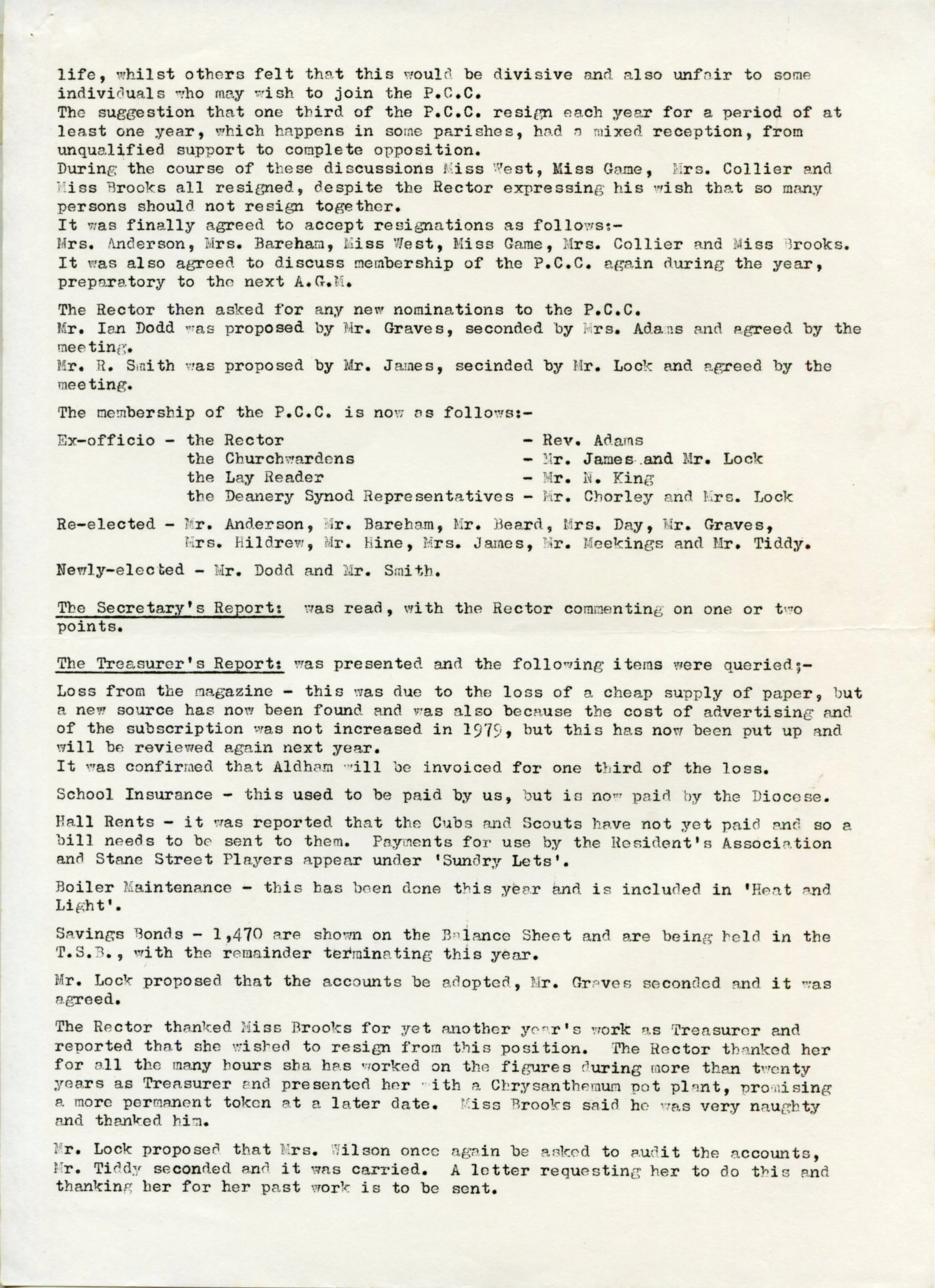 Minutes from the Annual General Meeting of the Parochial Church Council, 30th March 1980. Page 2 of 4.