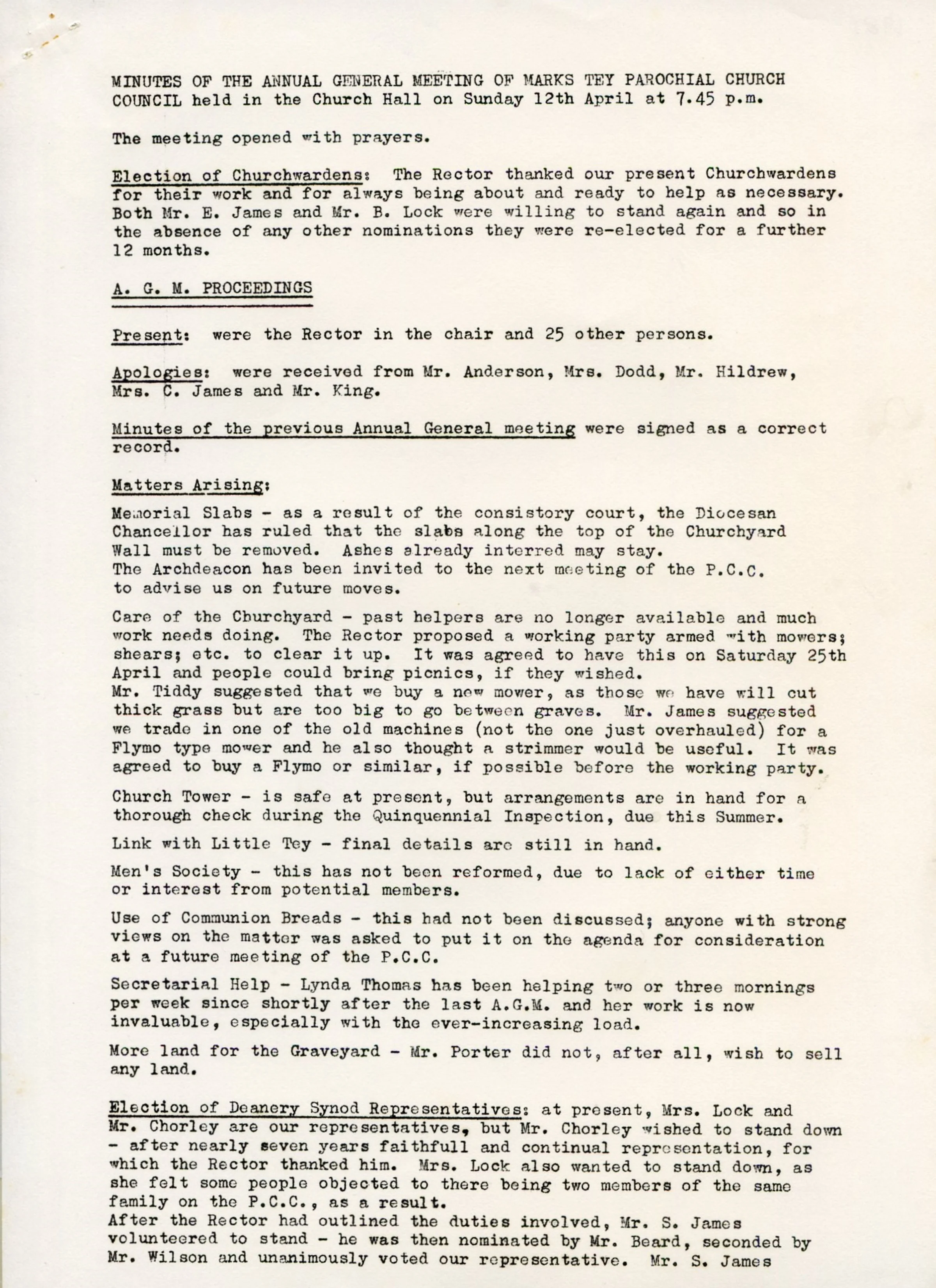 Minutes of the Annual General Meeting of the Parochial Church Council, 12th April 1981. Page 1 of 4.