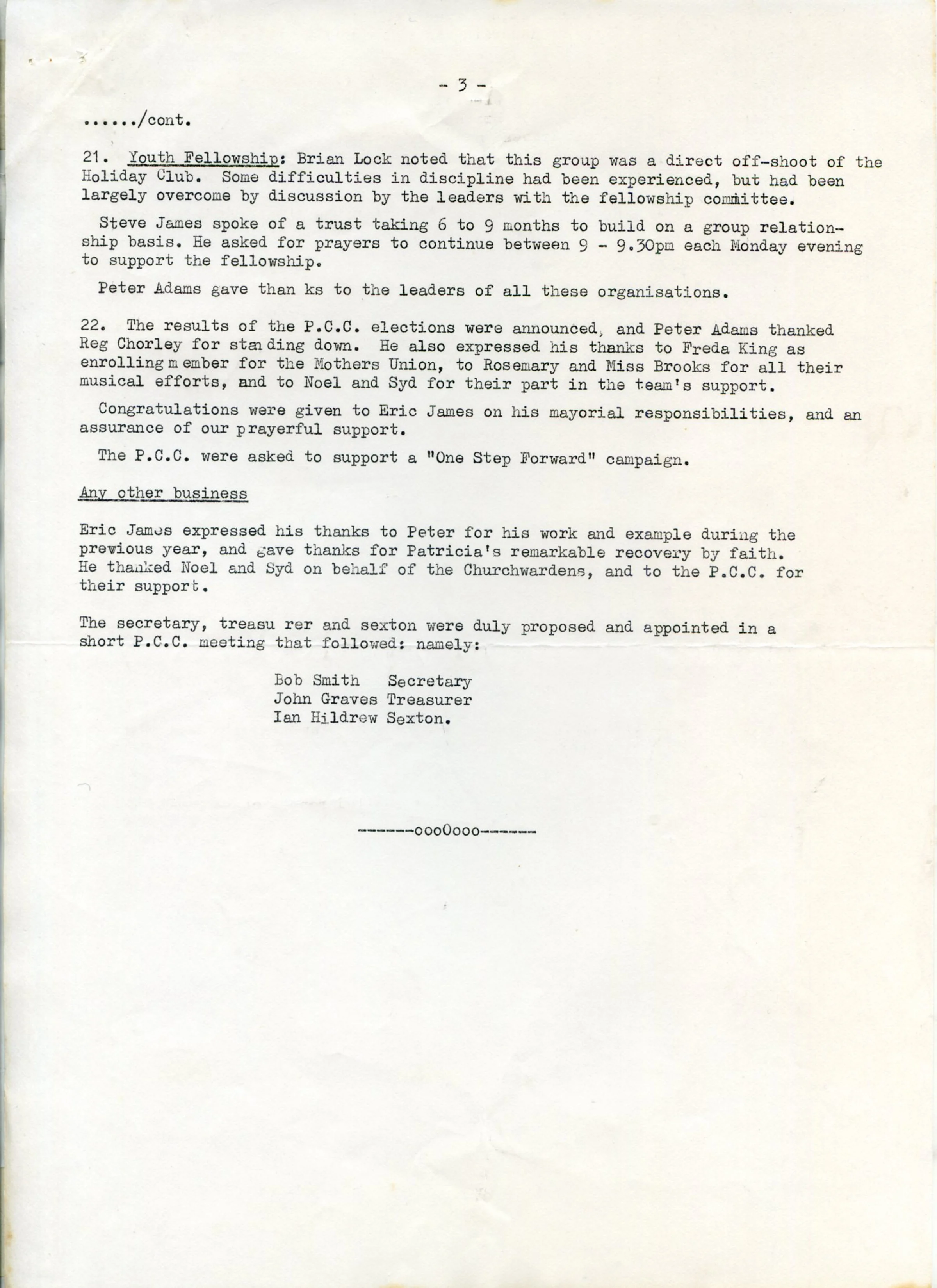Minutes from the Annual General Meeting of the Parochial Church Councill, 4th April 1982. Page 3 of 3.