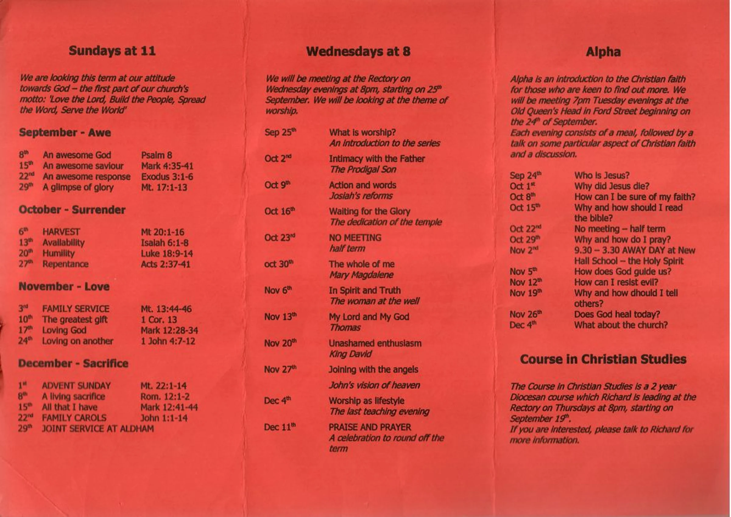 Programme for the Autumn term at St Andrew's Church, 2002. Page 2 of 2.