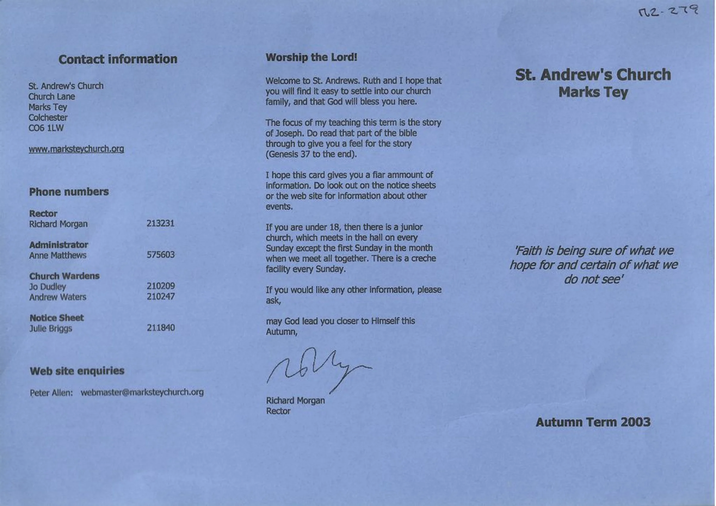 Cover of the programme of autumn services and events at St Andrew's Church 2003.