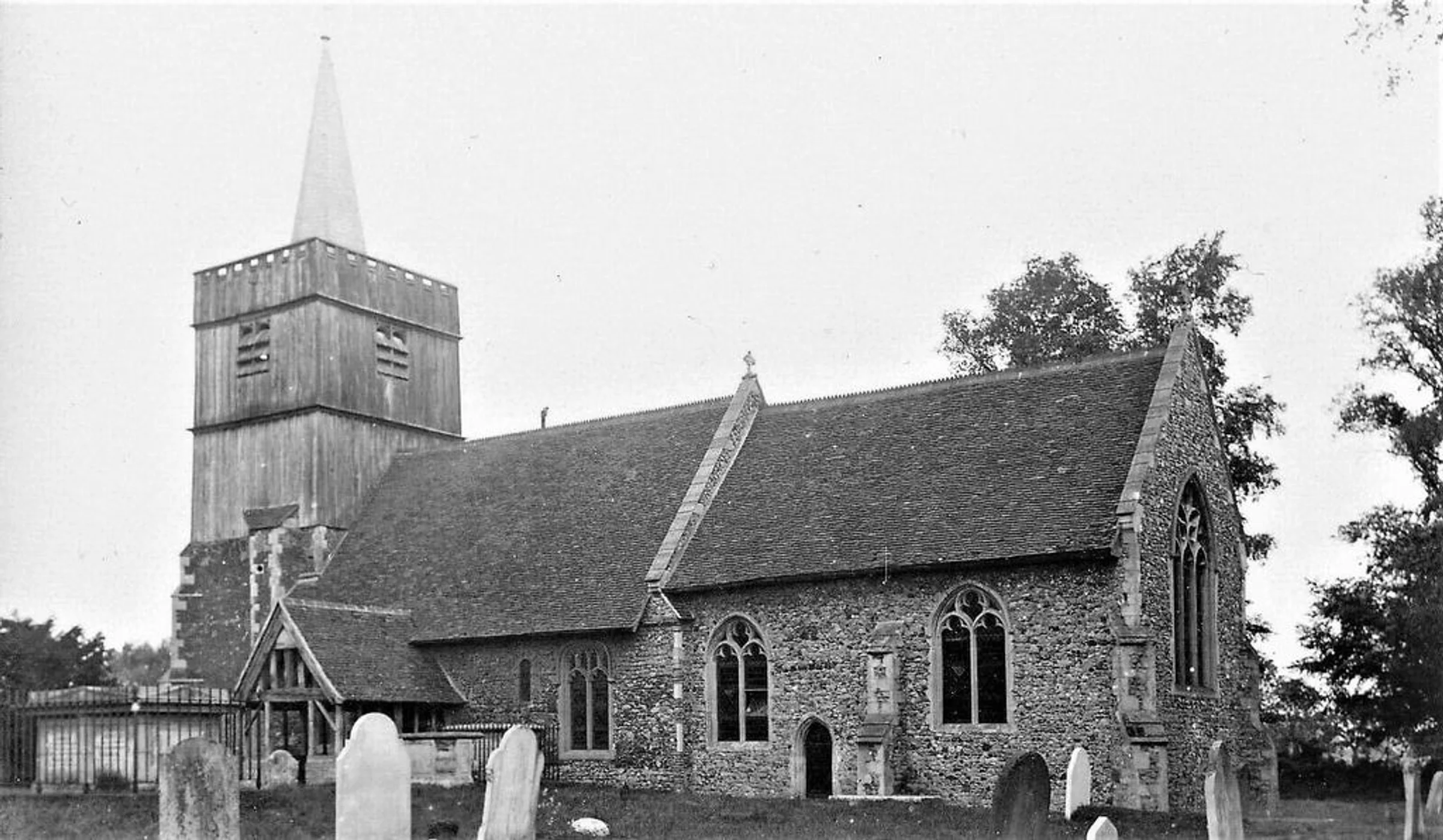Black and white photograph of St Andrew's Church looking northwest, from Facebook.