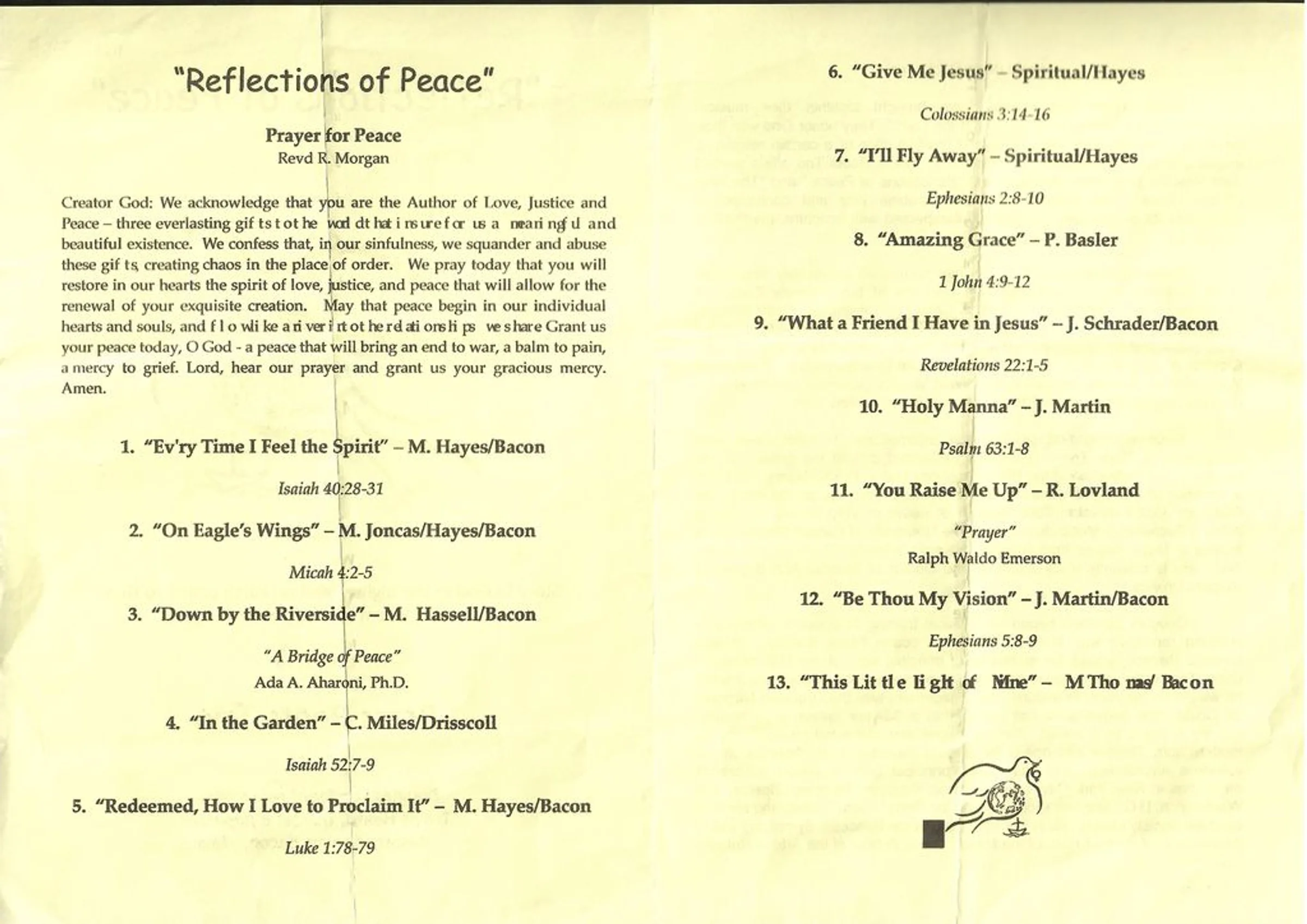 Programme from a vespers service performed by the Brass Roots Trio in St Andrew's Church. Page 2 of 2.