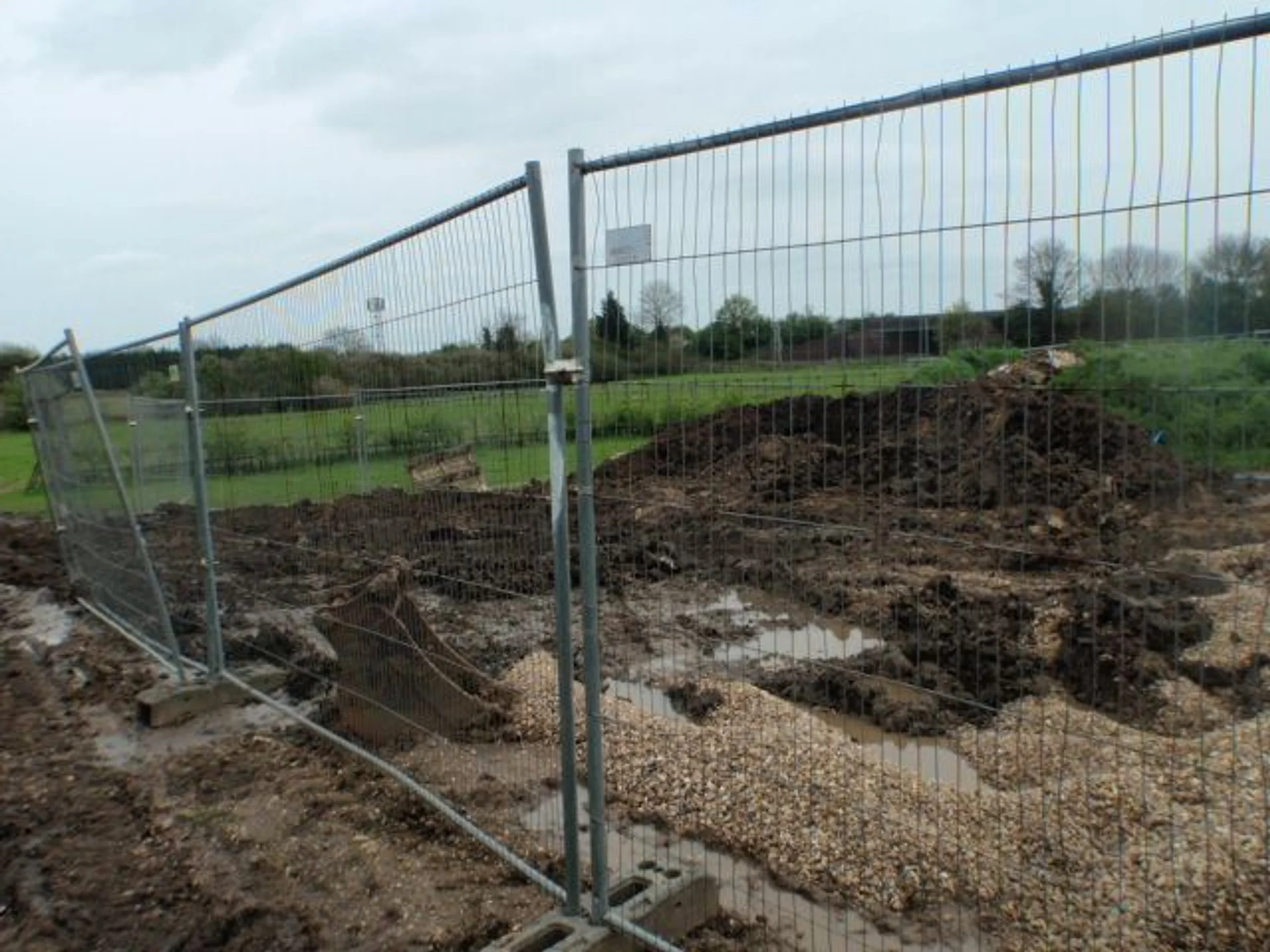 Photograph of an area of excavation behind fencing, during work on the car park.