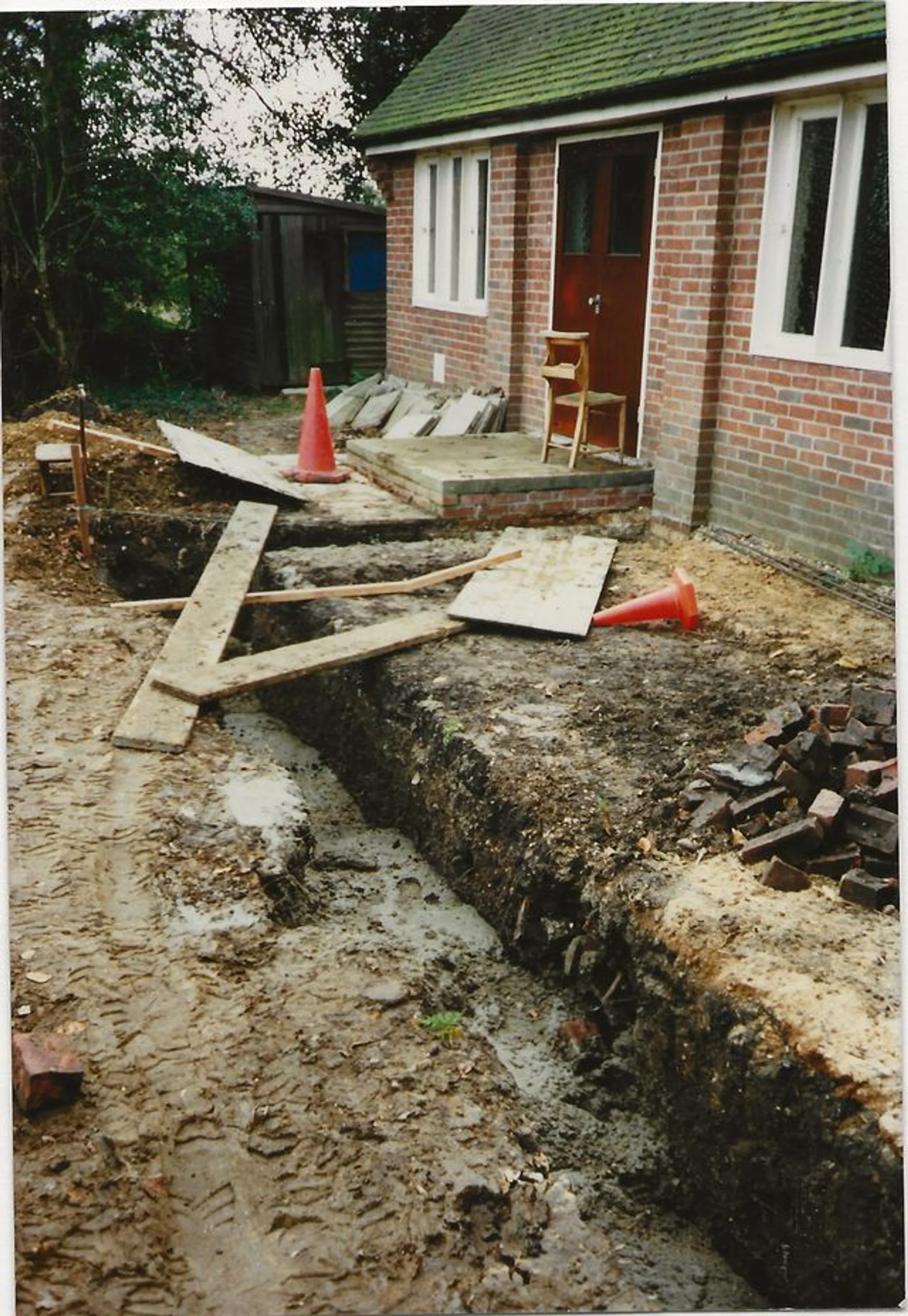 Photograph of foundation trenches adjacent to the Church Hall. Unknown date.