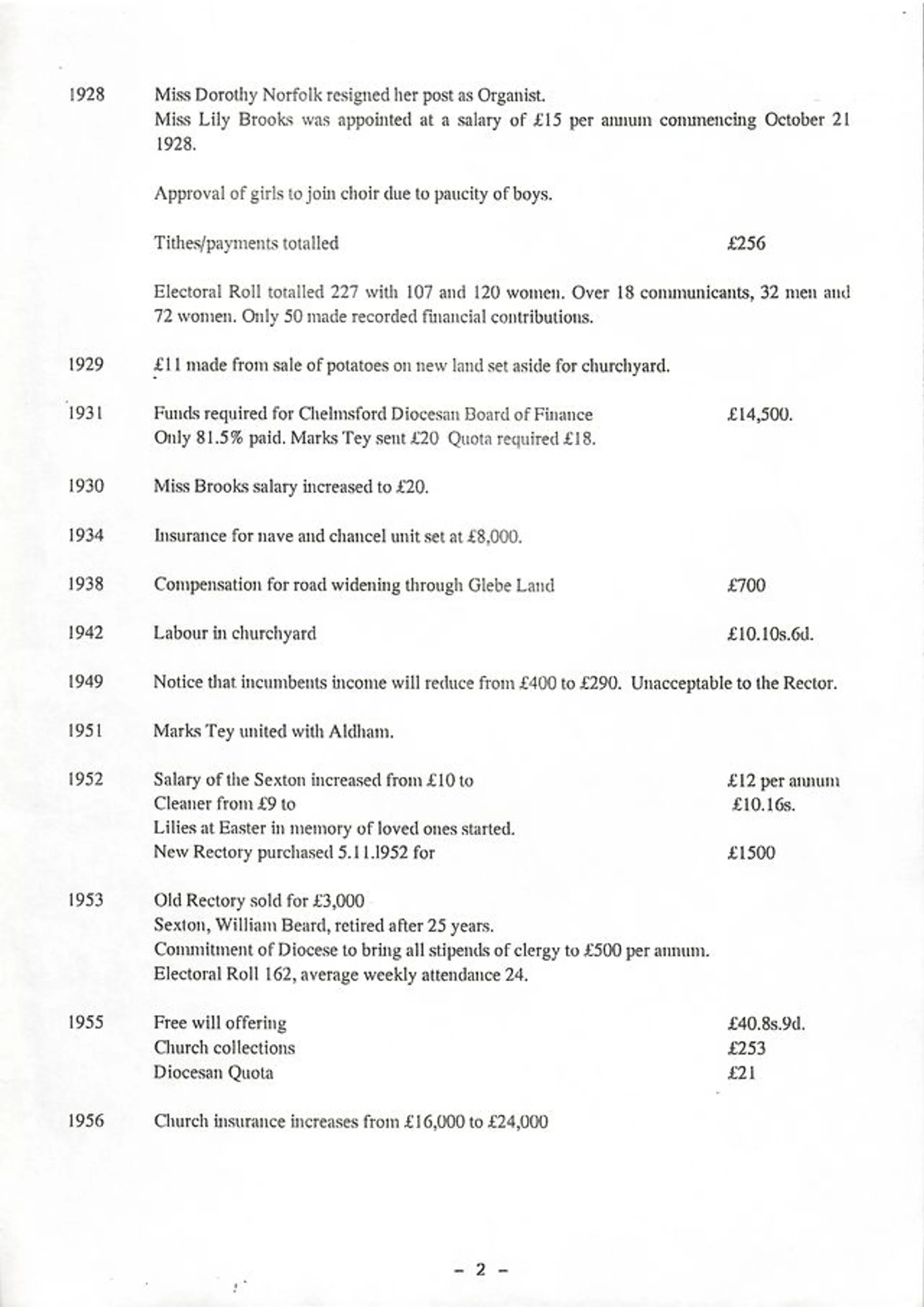 Transcript of extracts from the churchwarden's accounts between 1928 and 1956.