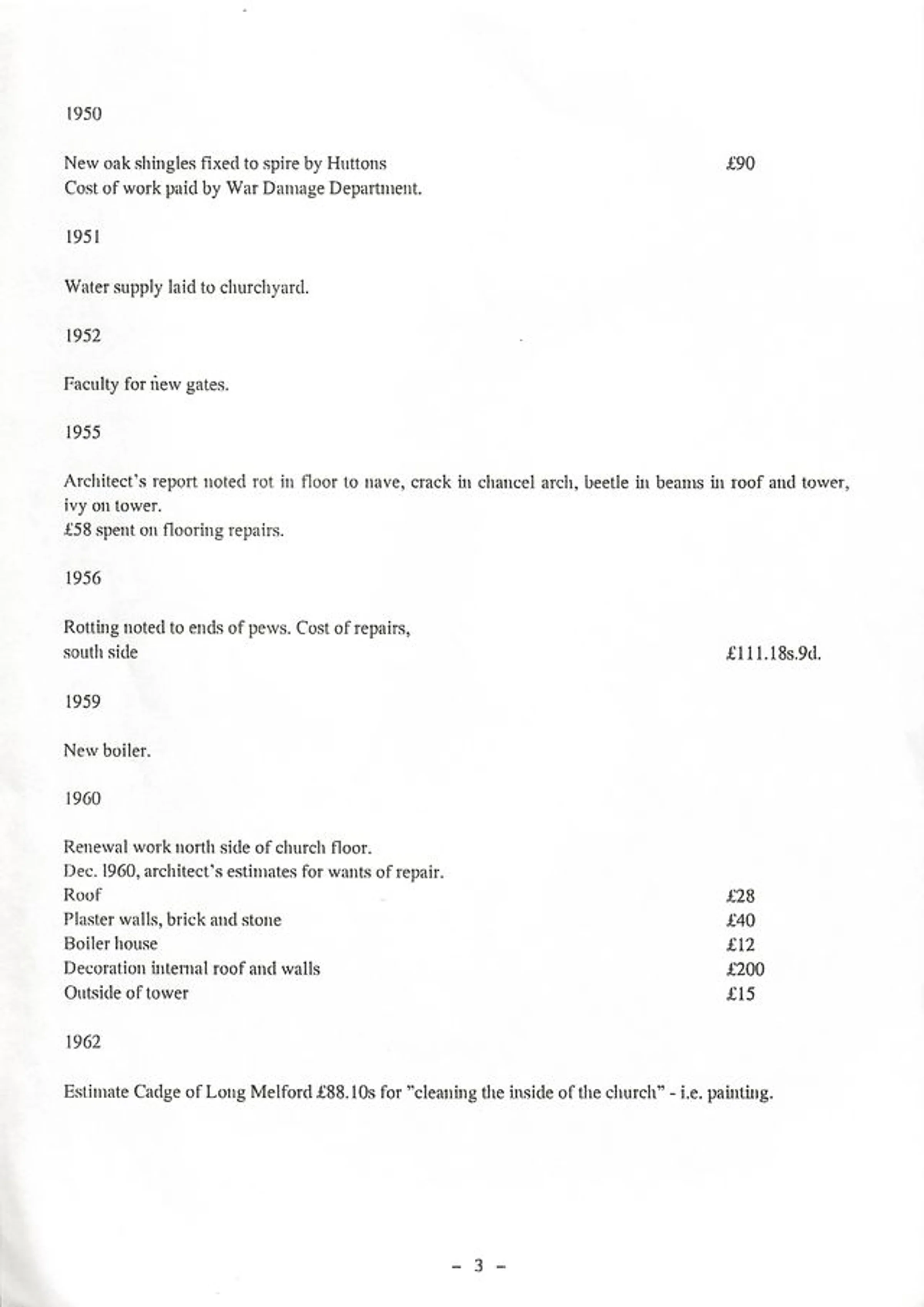 Transcript of extracts from the churchwarden's accounts between 1950 and 1962.