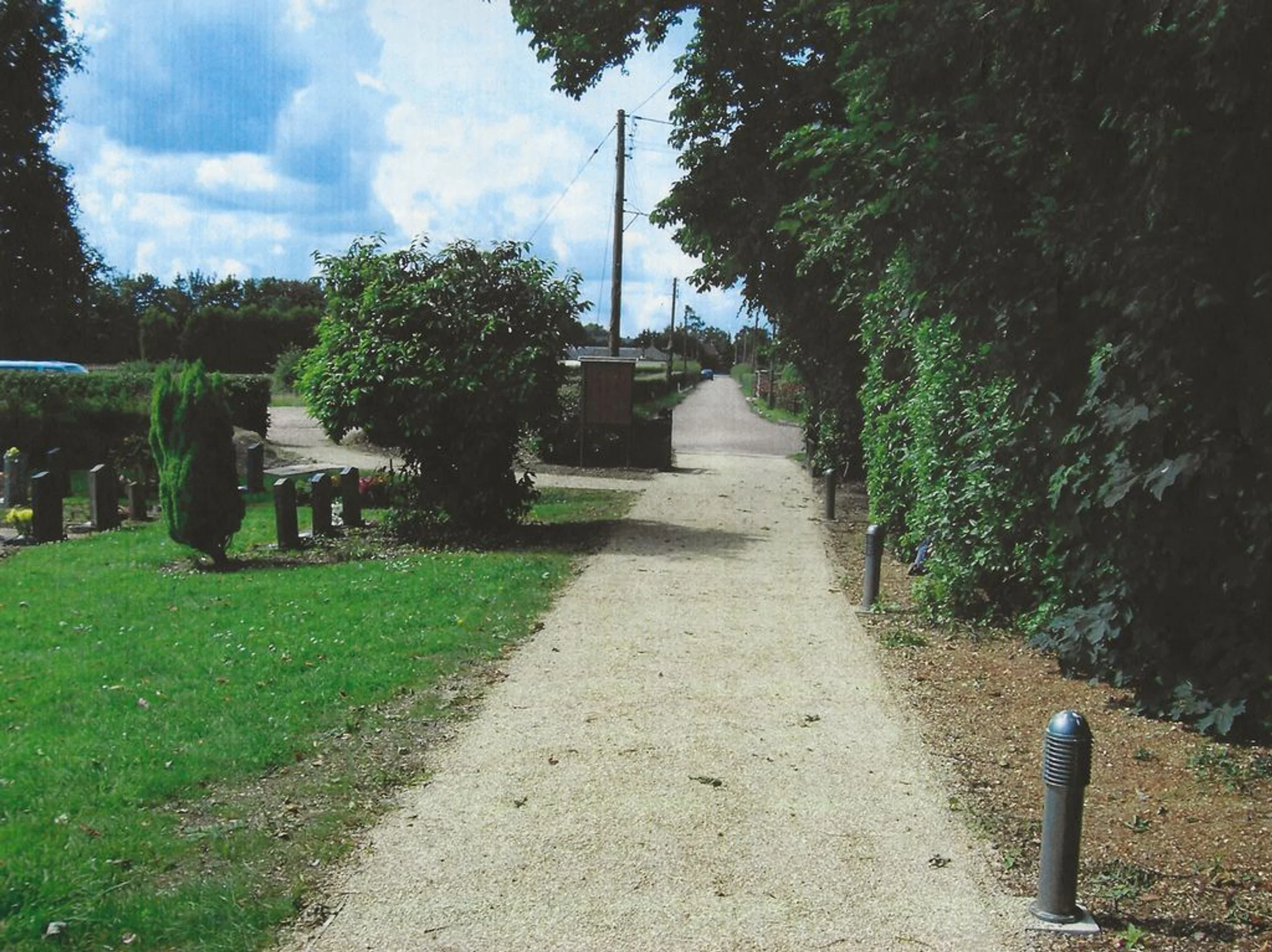 Photograph looking south along Church Lane showing the completed surfacing of the path through the churchyard, following the 2007 reordering.