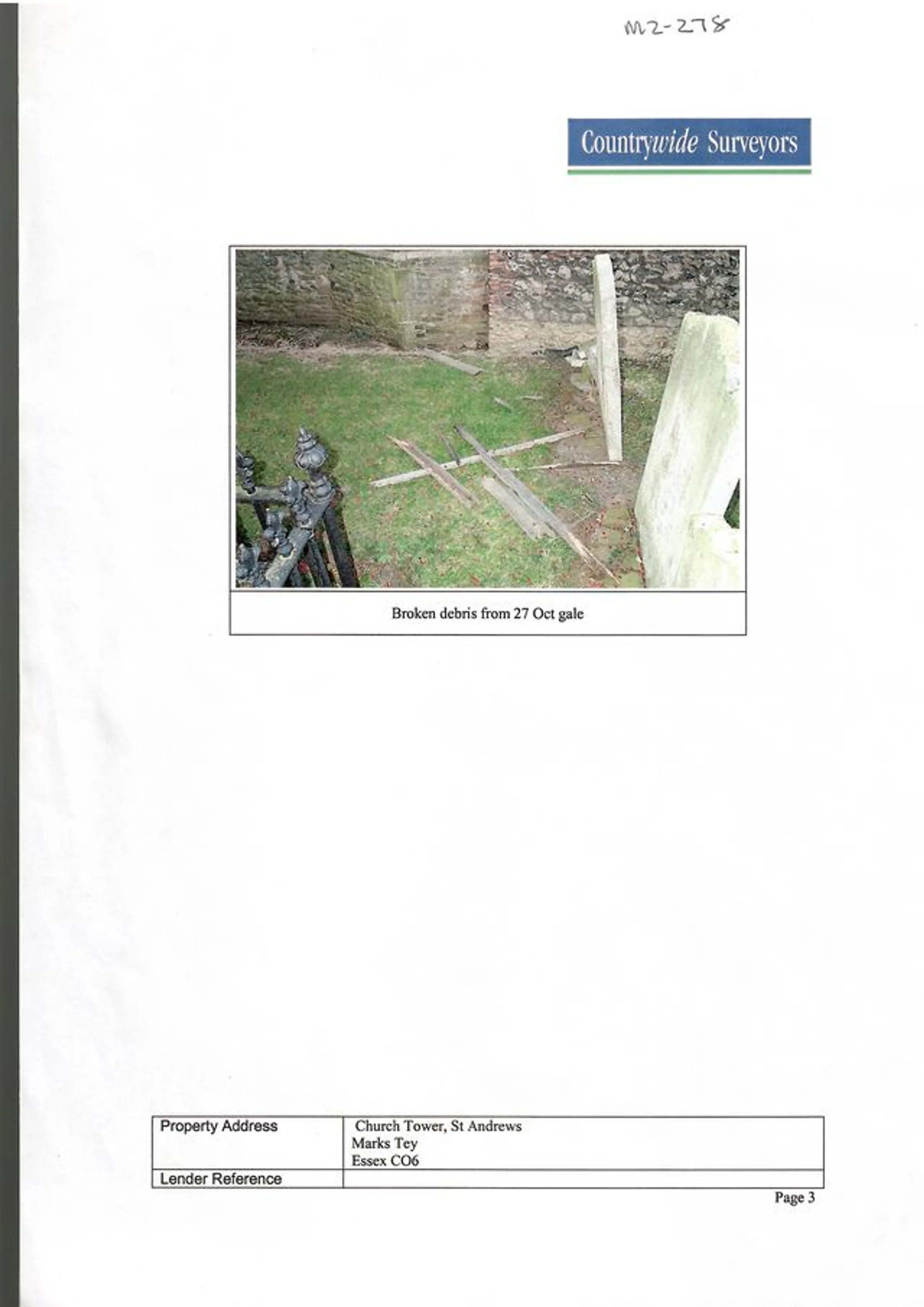 Photograph showing "Broken debris from 27 Oct gale".
