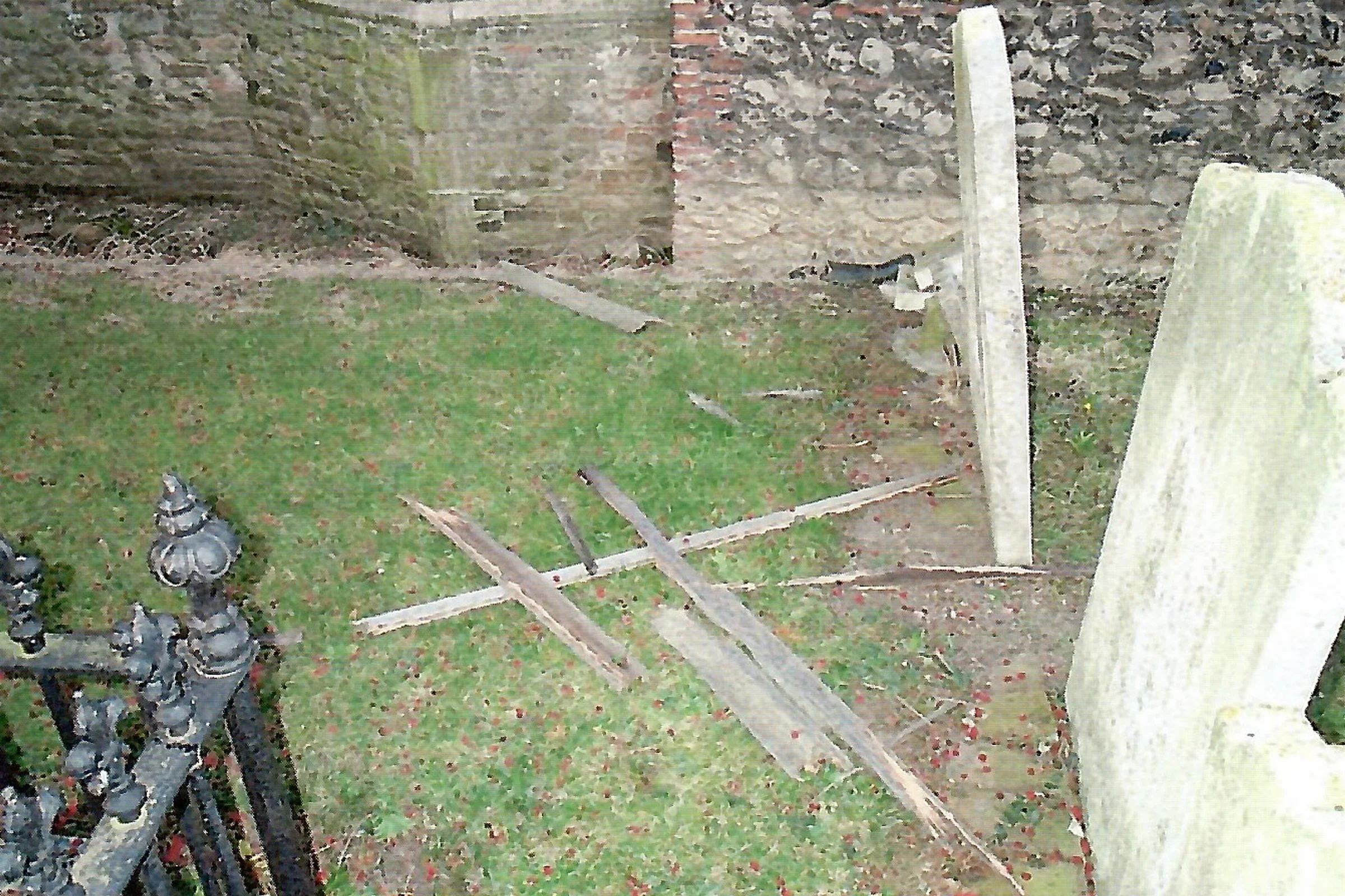 Photograph showing broken debris from St Andrew’s Church tower, in the 27th Oct gale.