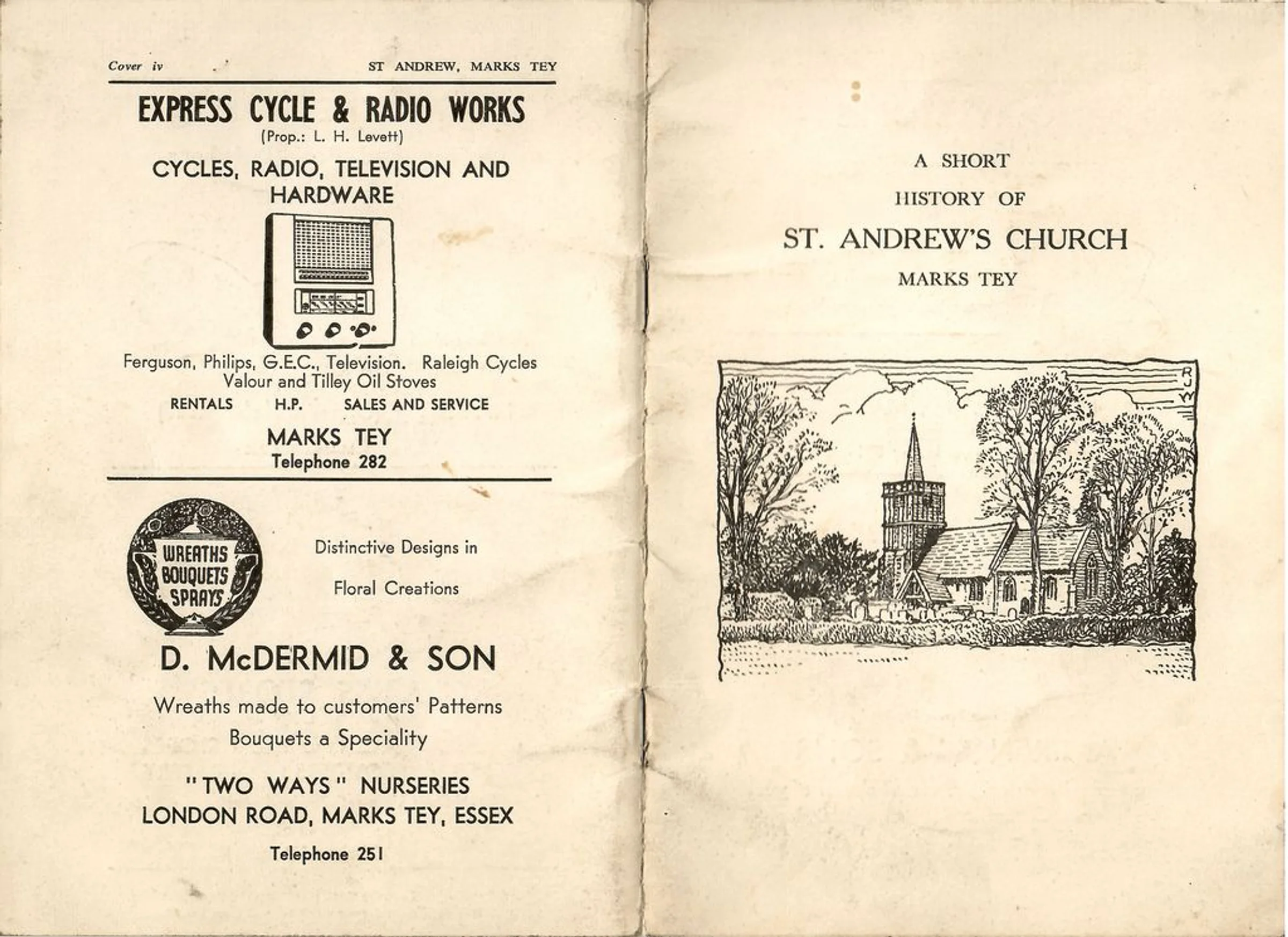 "A Short History of St Andrew's Church Marks Tey" by Edith Mason, p 1 of 12.