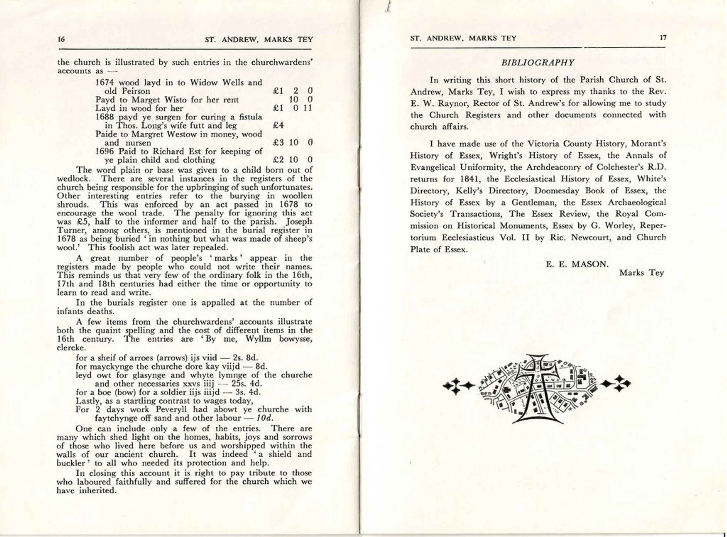 "A Short History of St Andrew's Church Marks Tey" by Edith Mason, p 10 of 12.