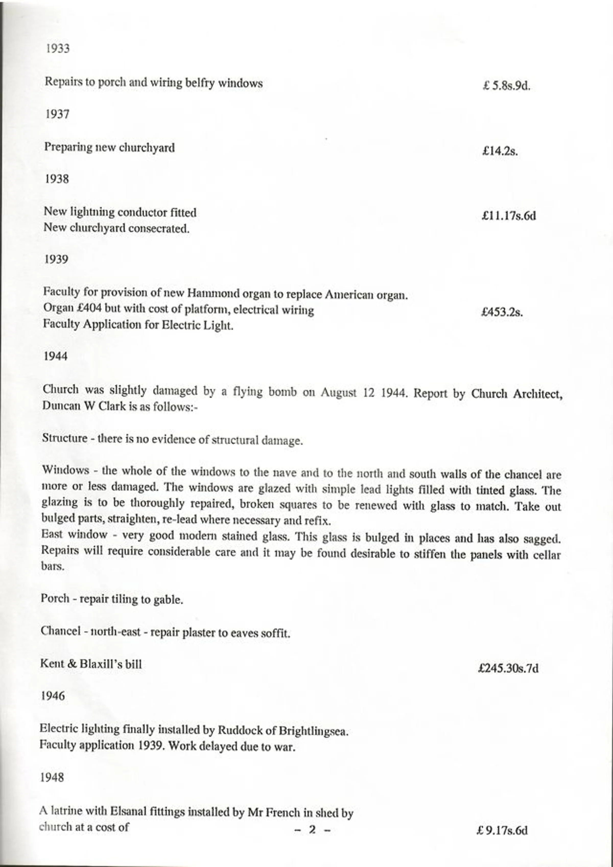 Extracts from the church records held at the Essex Record Office relating to property management 1933-1948.