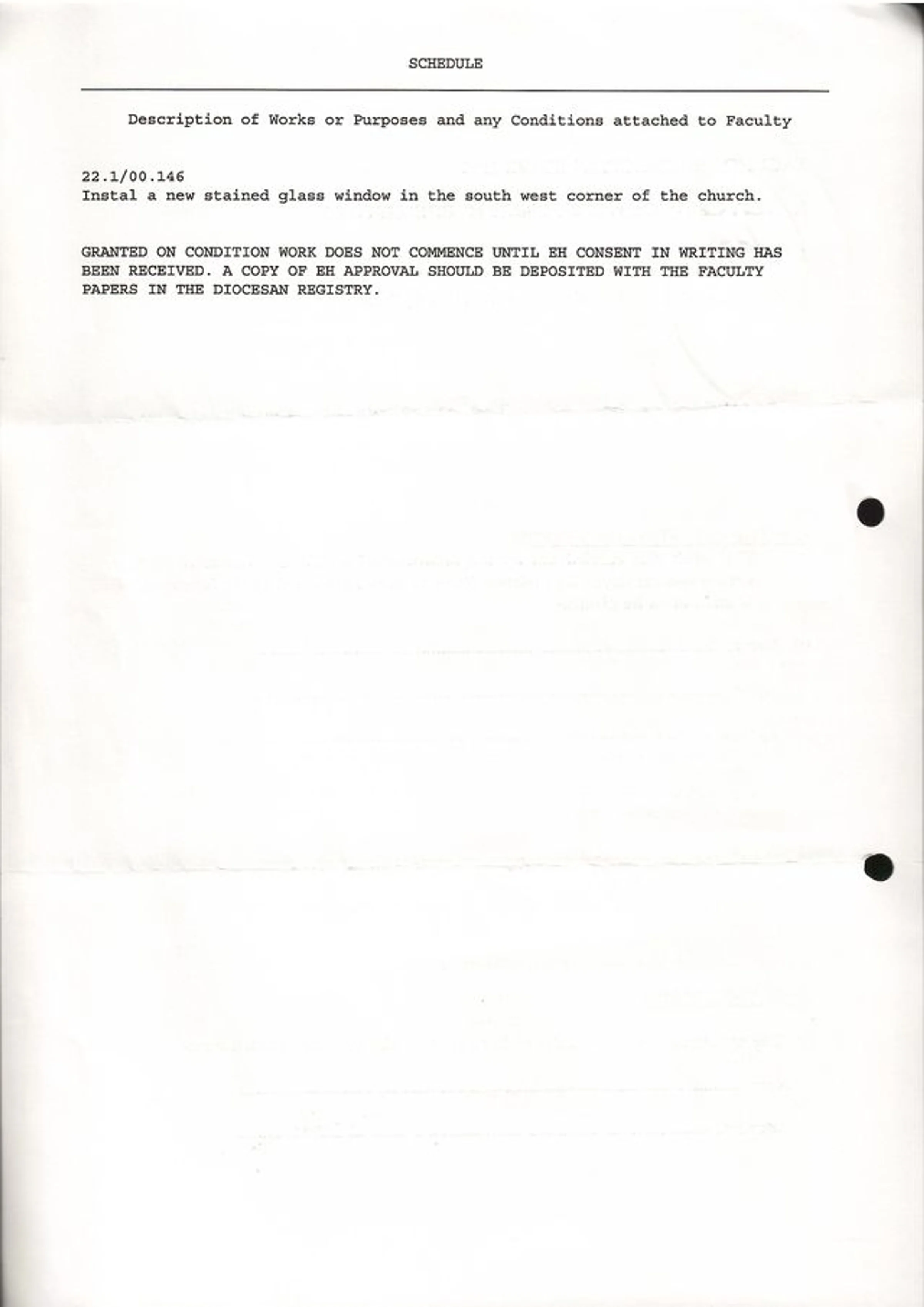 St Andrew's Church faculty schedule window 2000