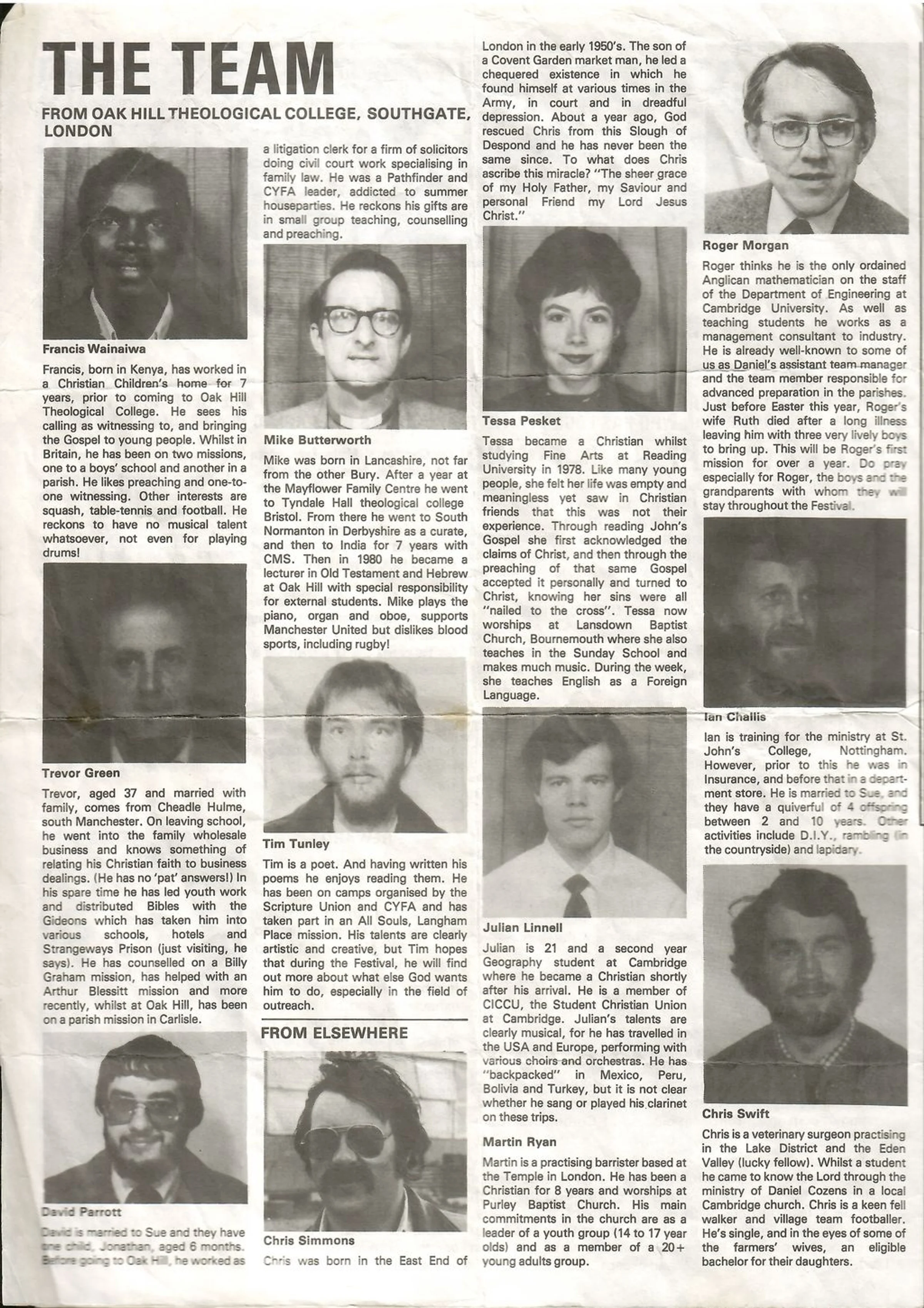 The Team from Oak Hill Theological College, Southgate, London