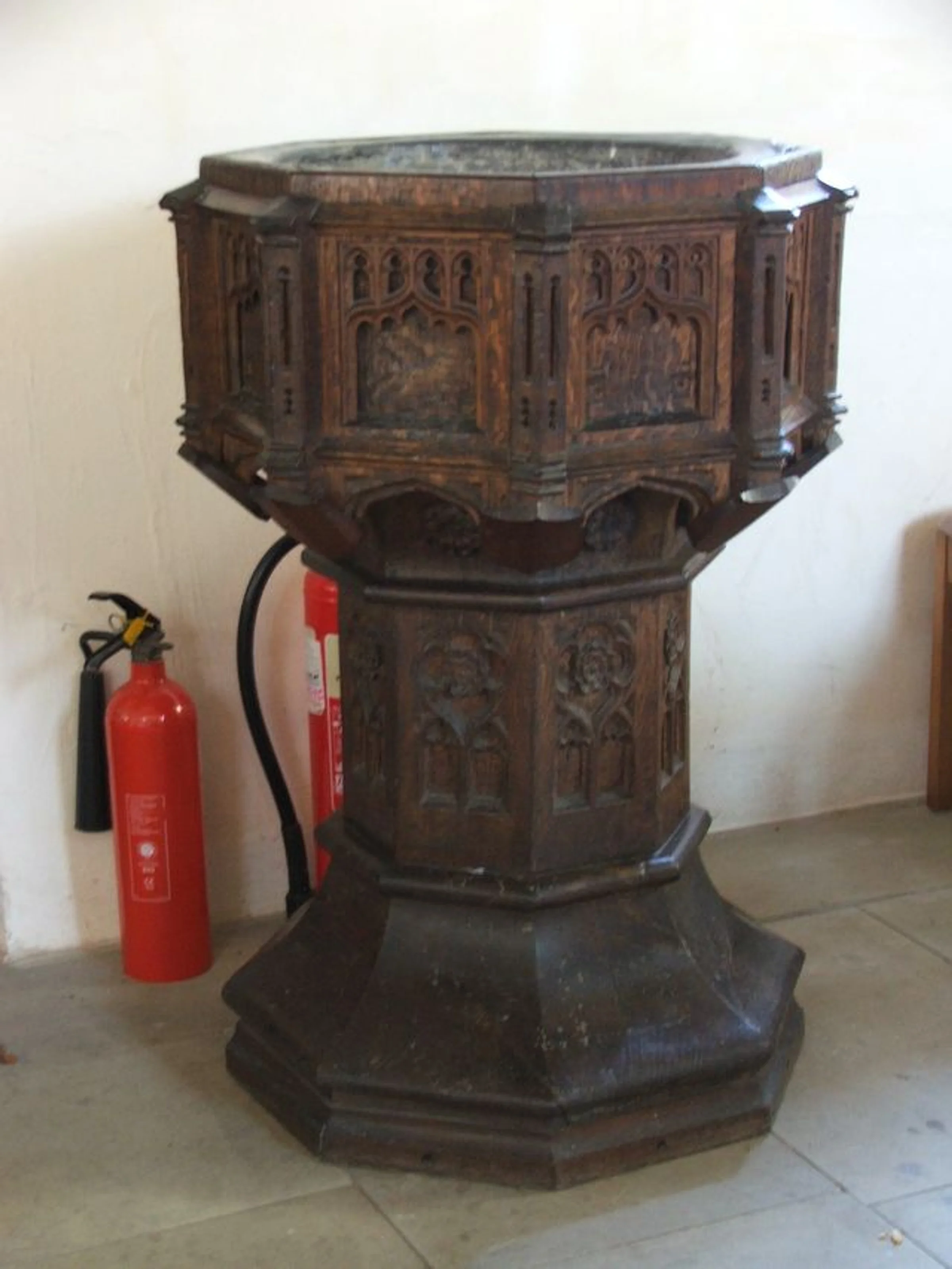 Photograph of the wooden font taken on the 17th March 2016.