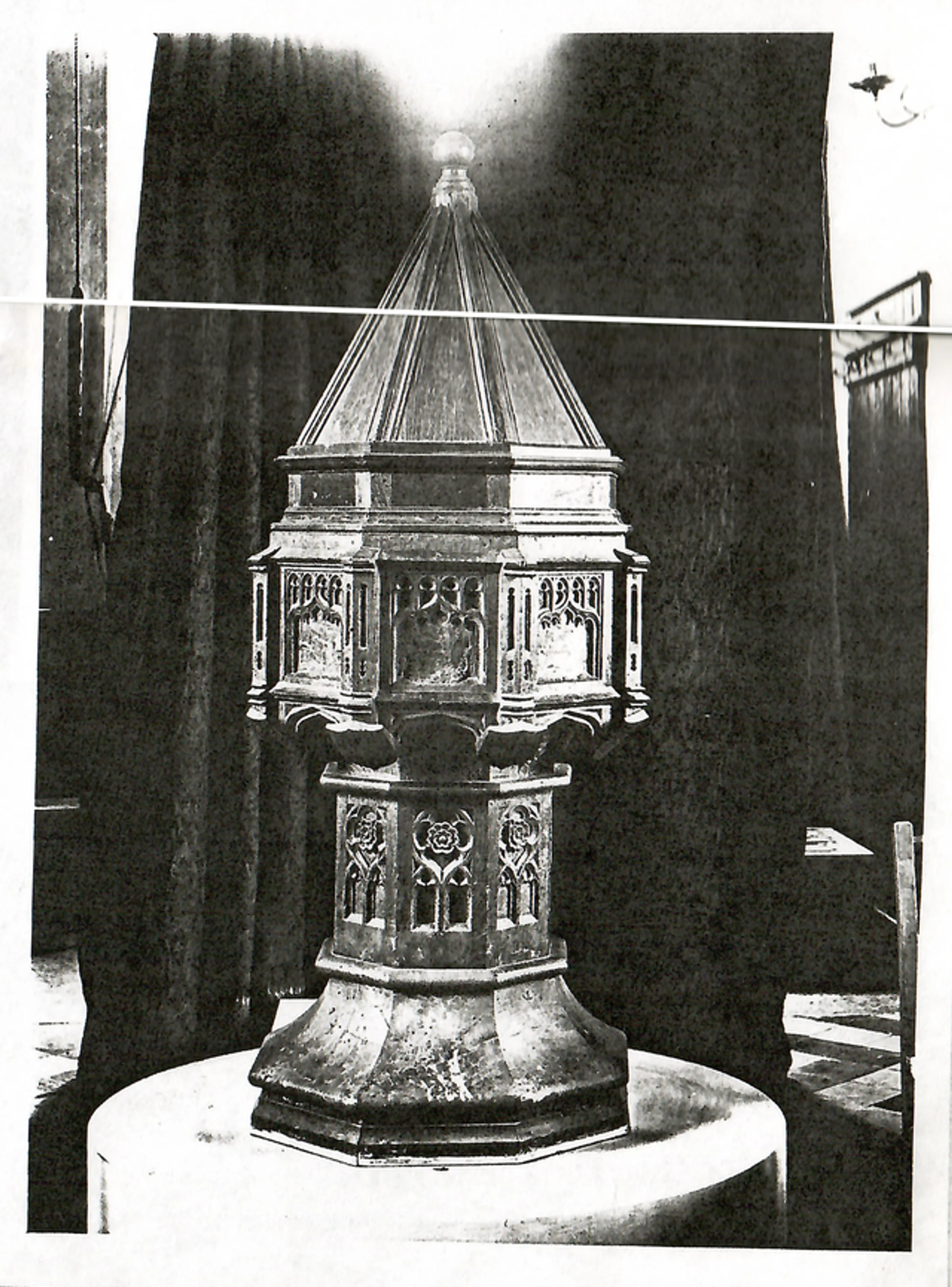 Black and white postcard of the font and cover, dated 1963.