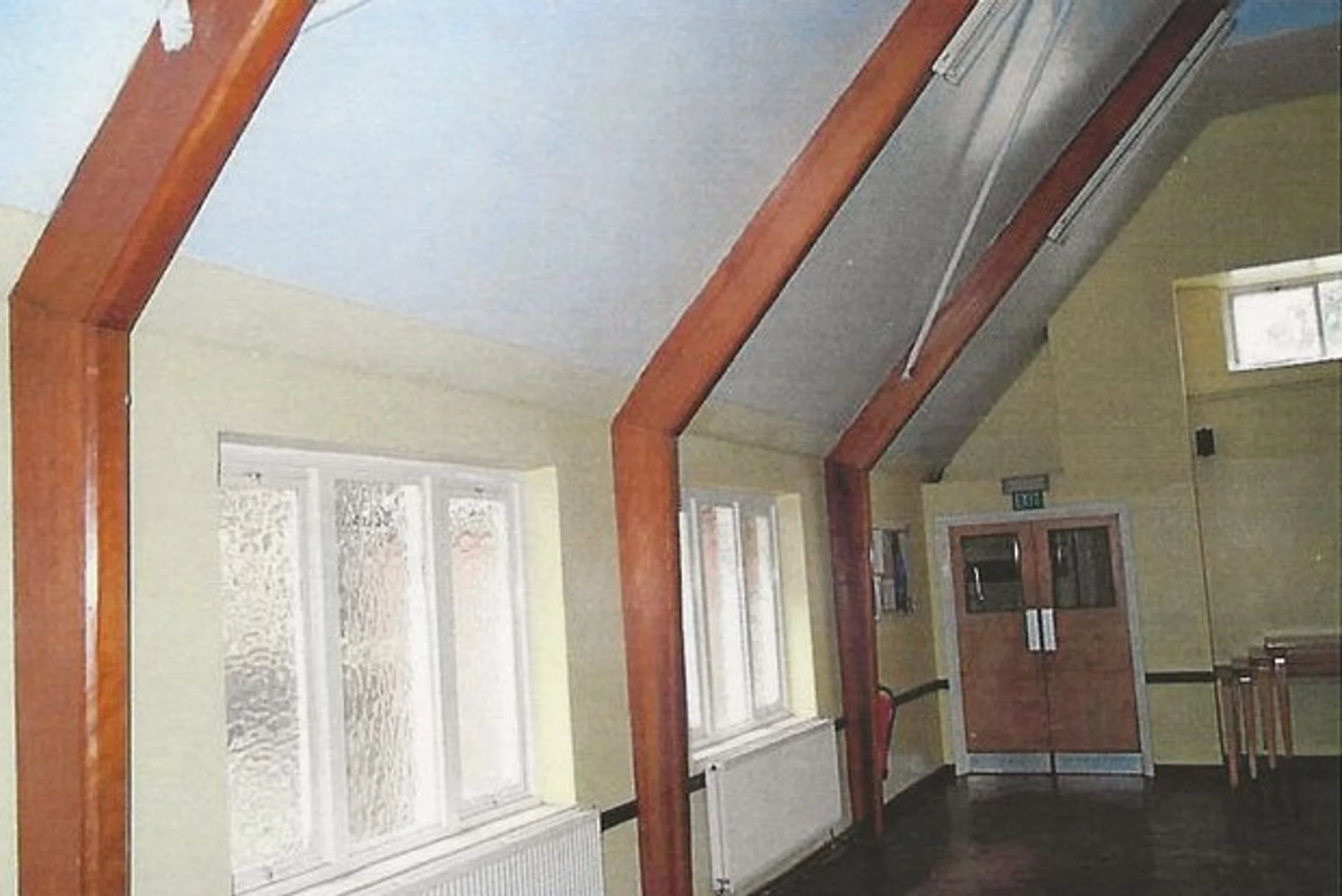 Photograph inside St Andrew’s Church hall showing the heating pipes.
