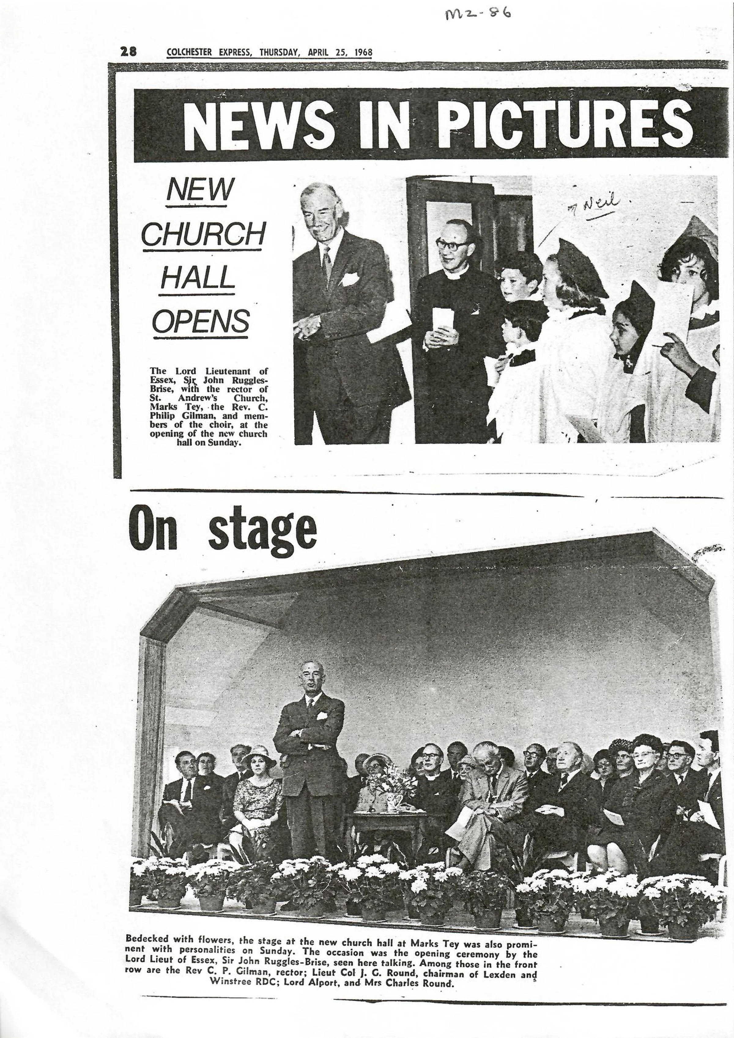Newspaper article with photographs regarding the opening of St Andrew's Church Hall, 1968.