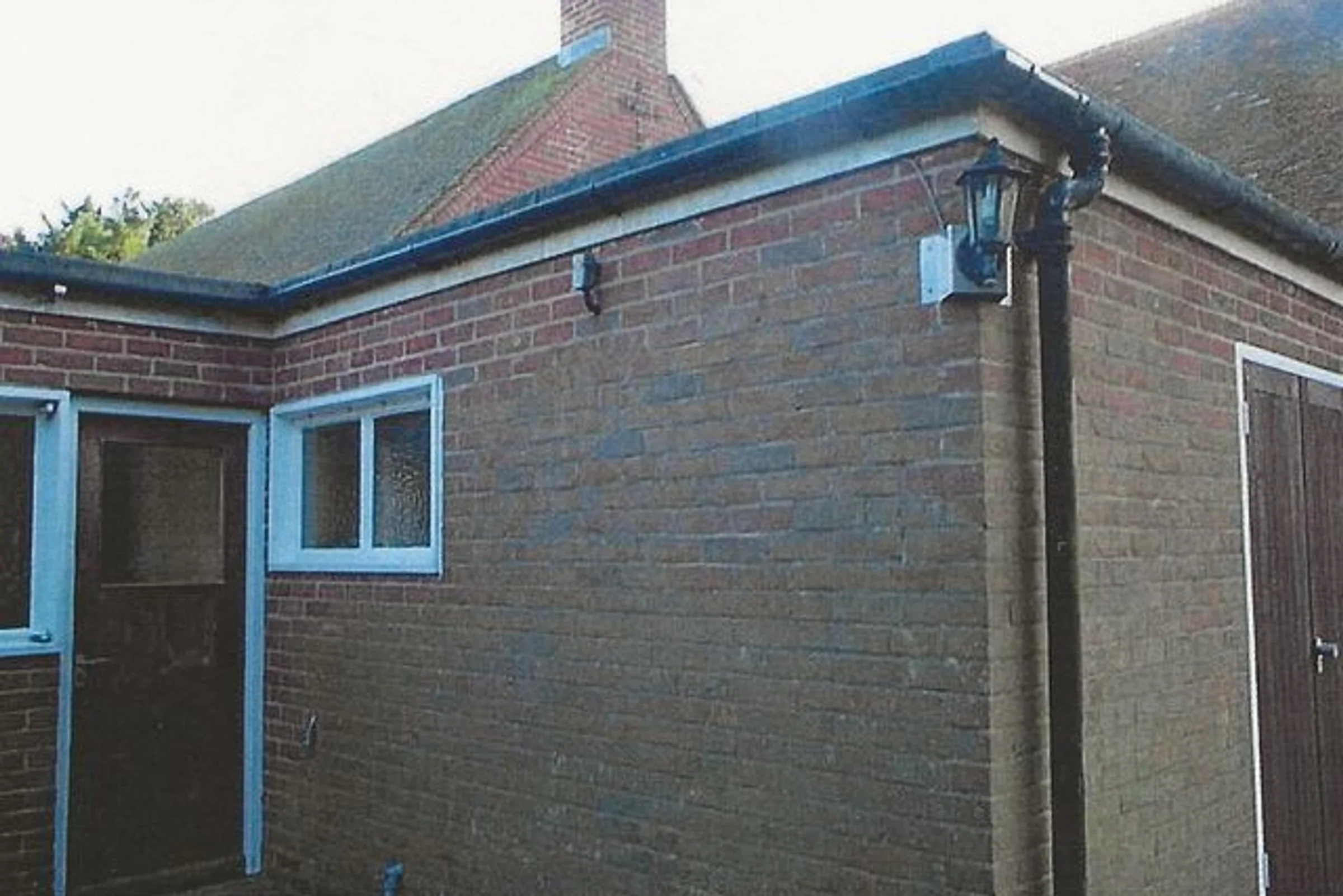 Photograph looking southeast of the external wall of the ladies toilet, in the church hall.
