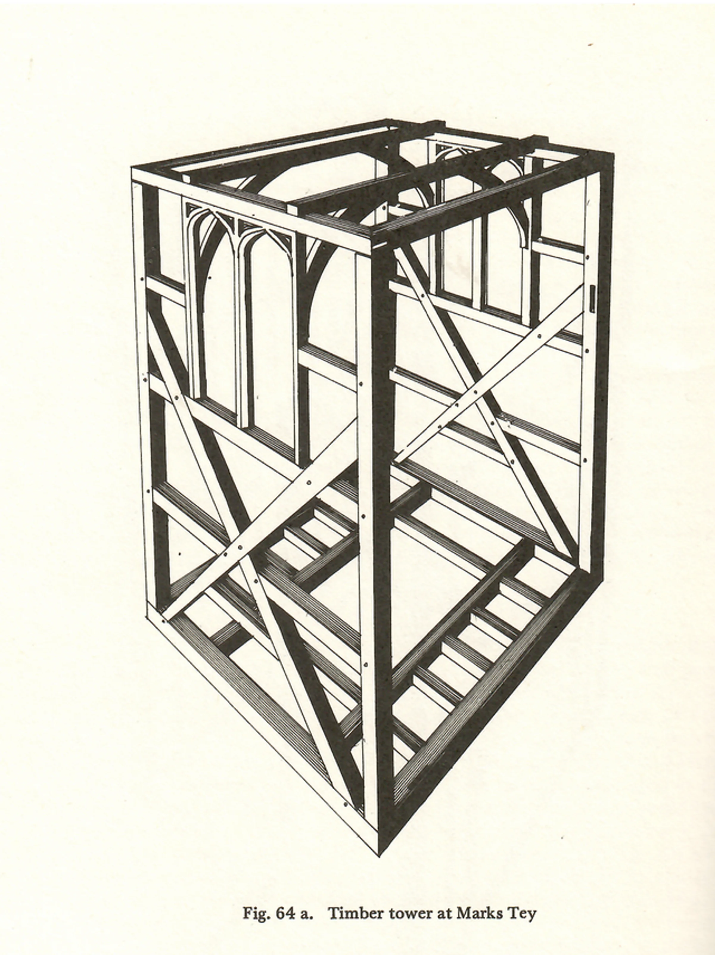 Close up of the diagram of the timber tower published by Hewett in "English Church Carpentry" Fig. 64 a.
