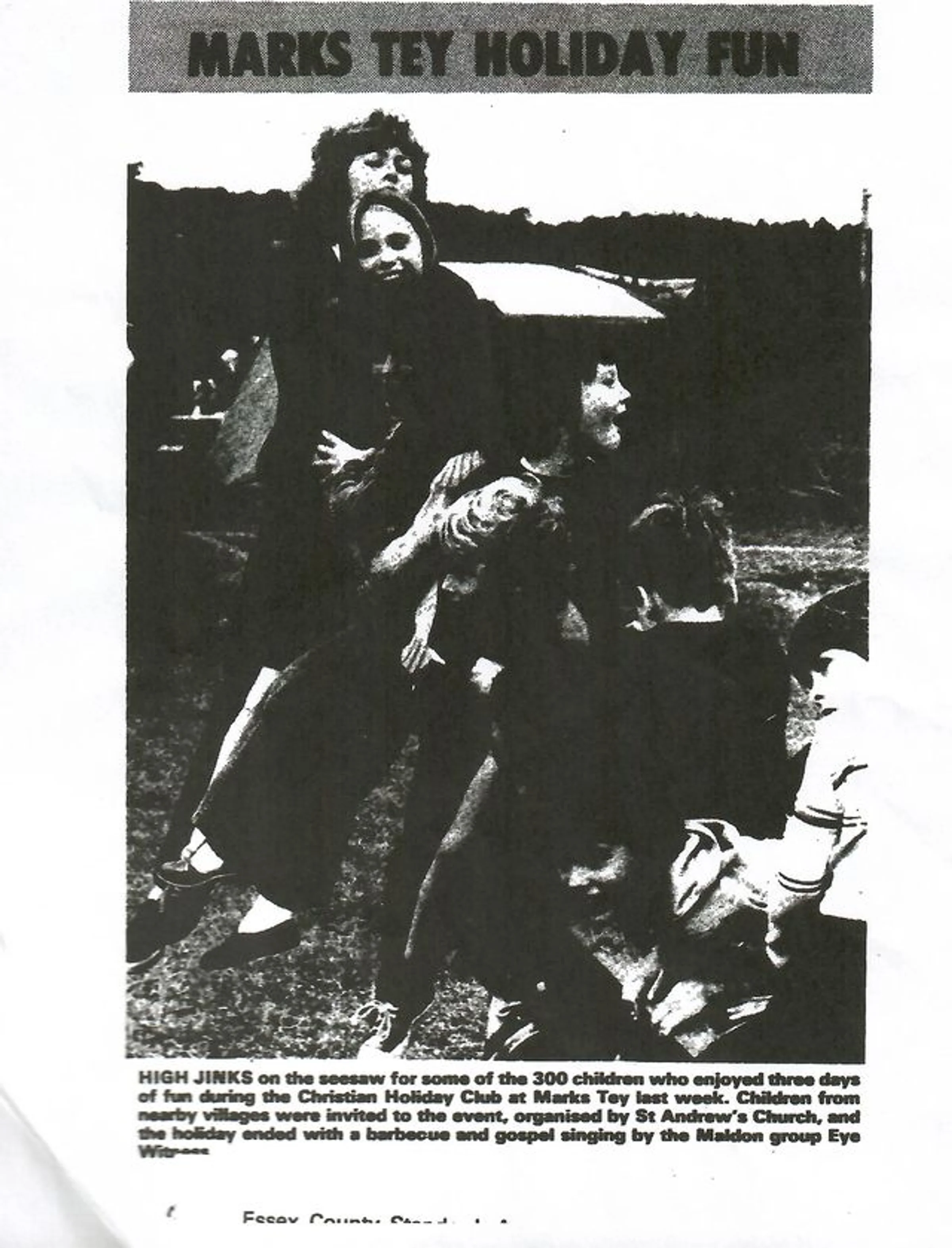 Short article and photograph regarding the St Andrew's Church Holiday Club, summer 1985.