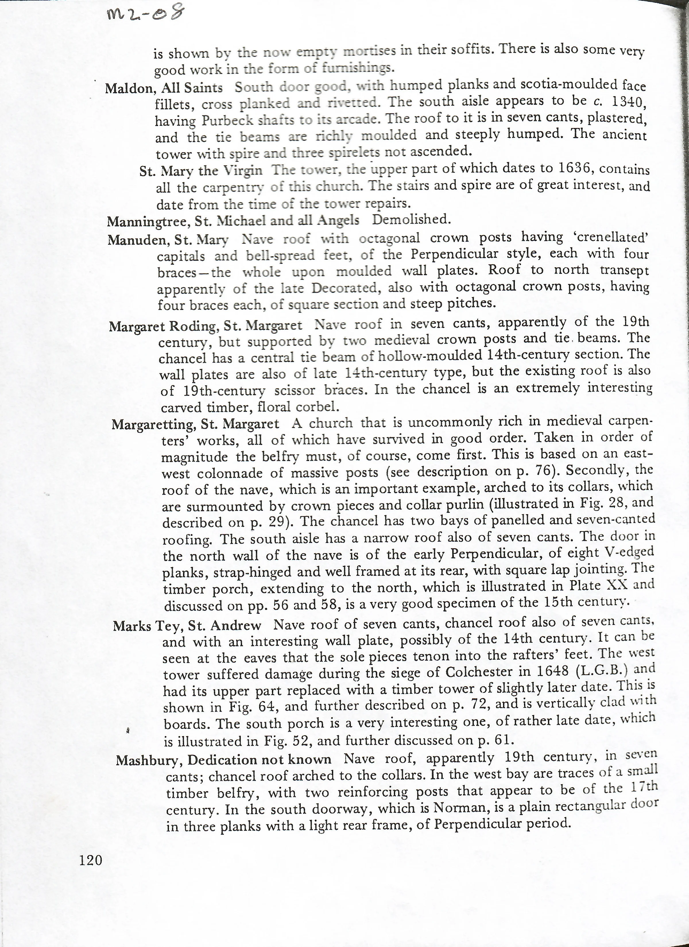 Extract from English Church Carpentry by Hewett, describing the Church and referring to the Siege of Colchester.