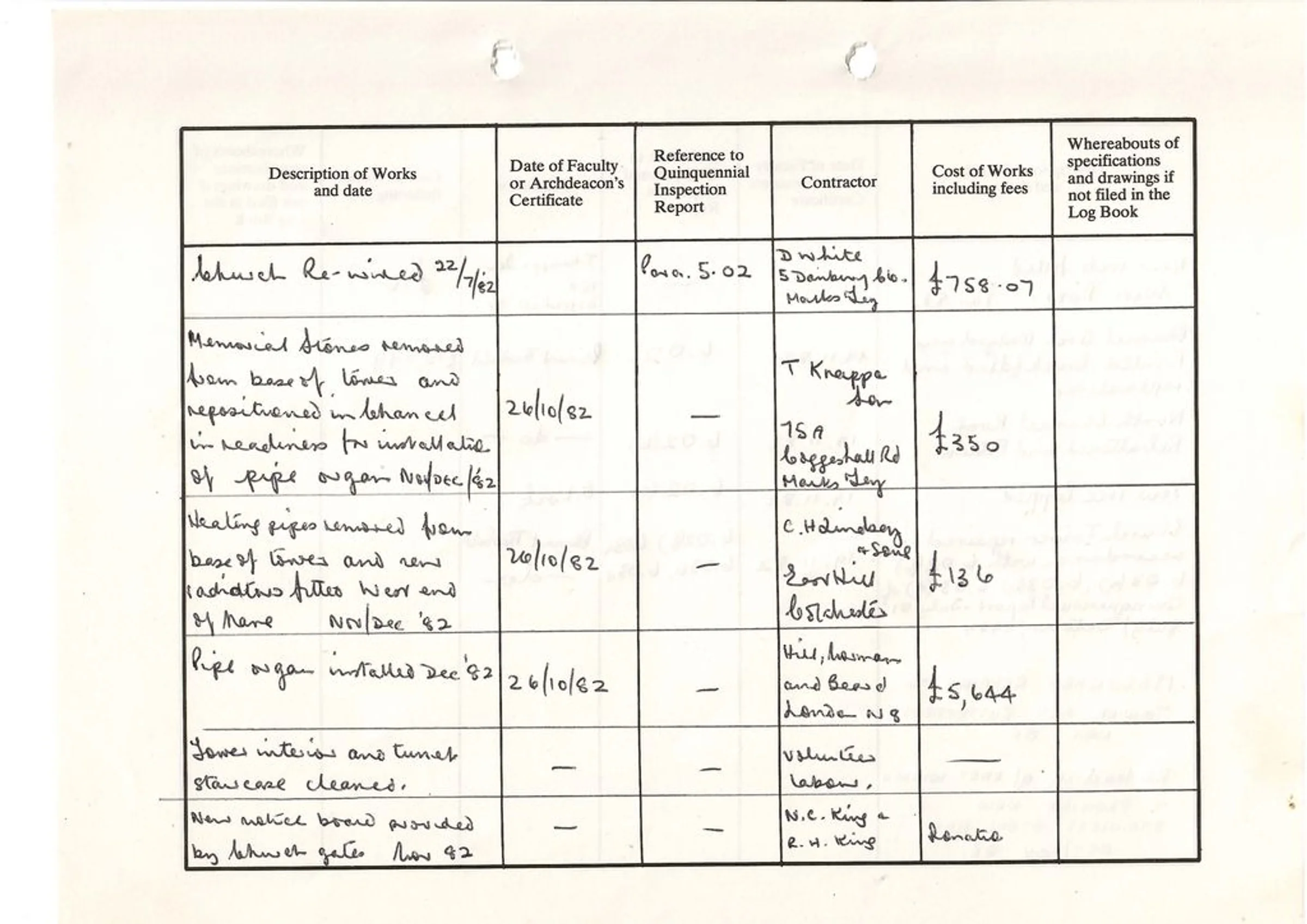 St Andrew's Church log book July to October 1982.
