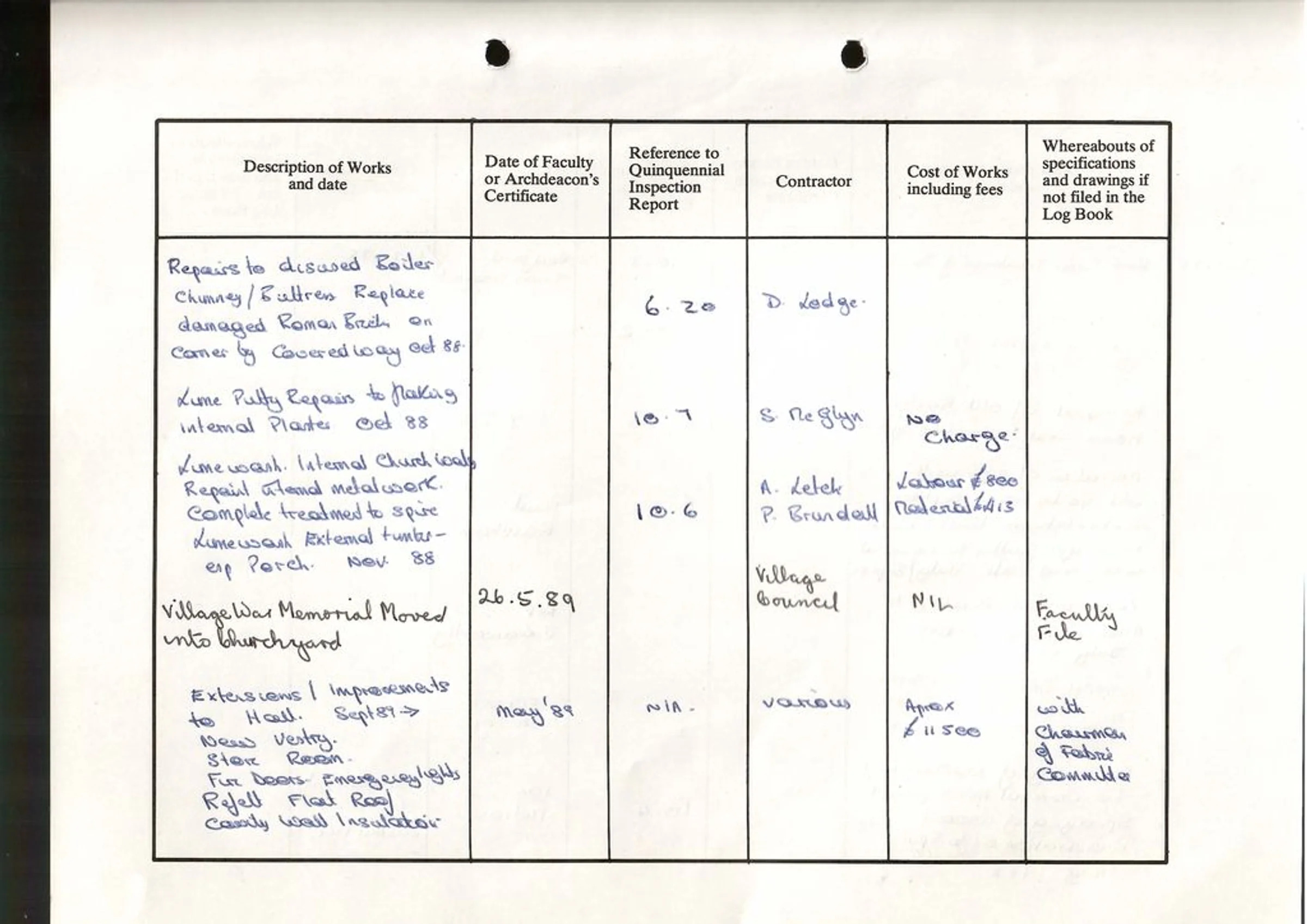 St Andrew's Church log book October 1988 to March 1989.