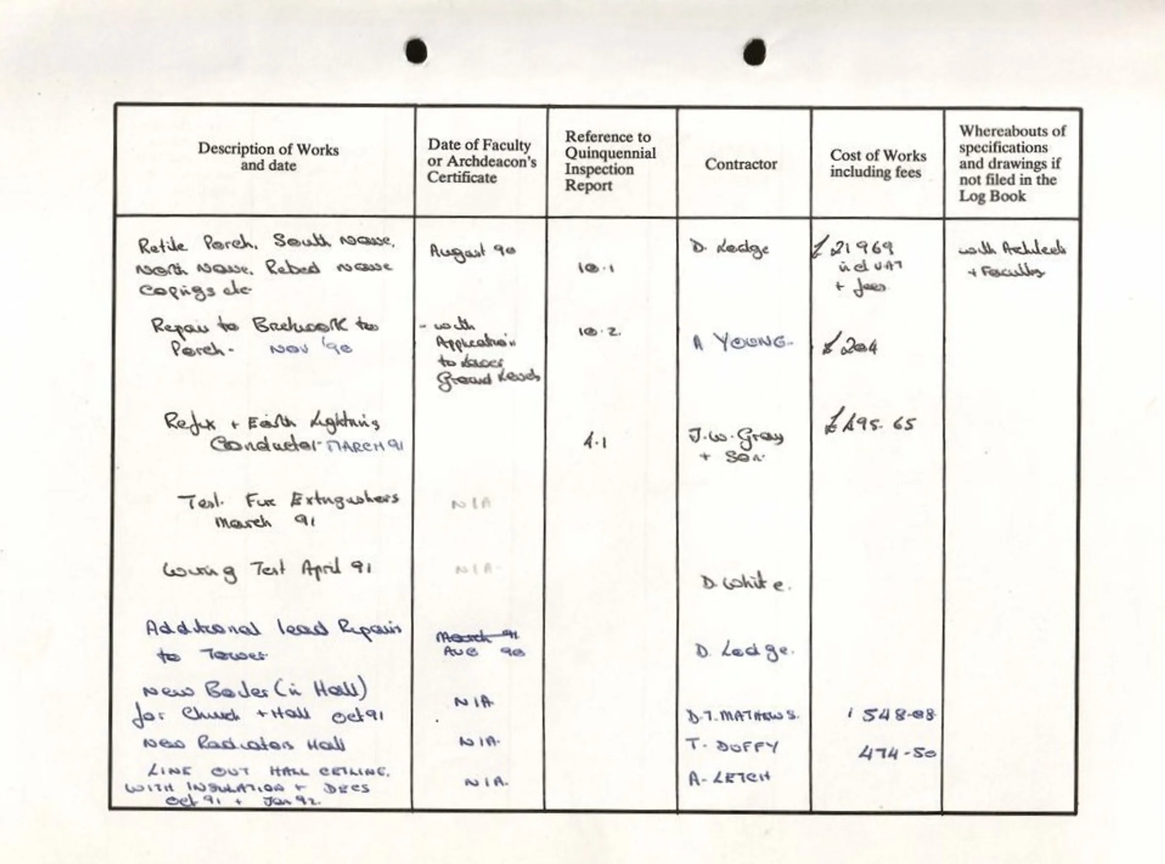 St Andrew's Church log book August 1990 to January 1992.