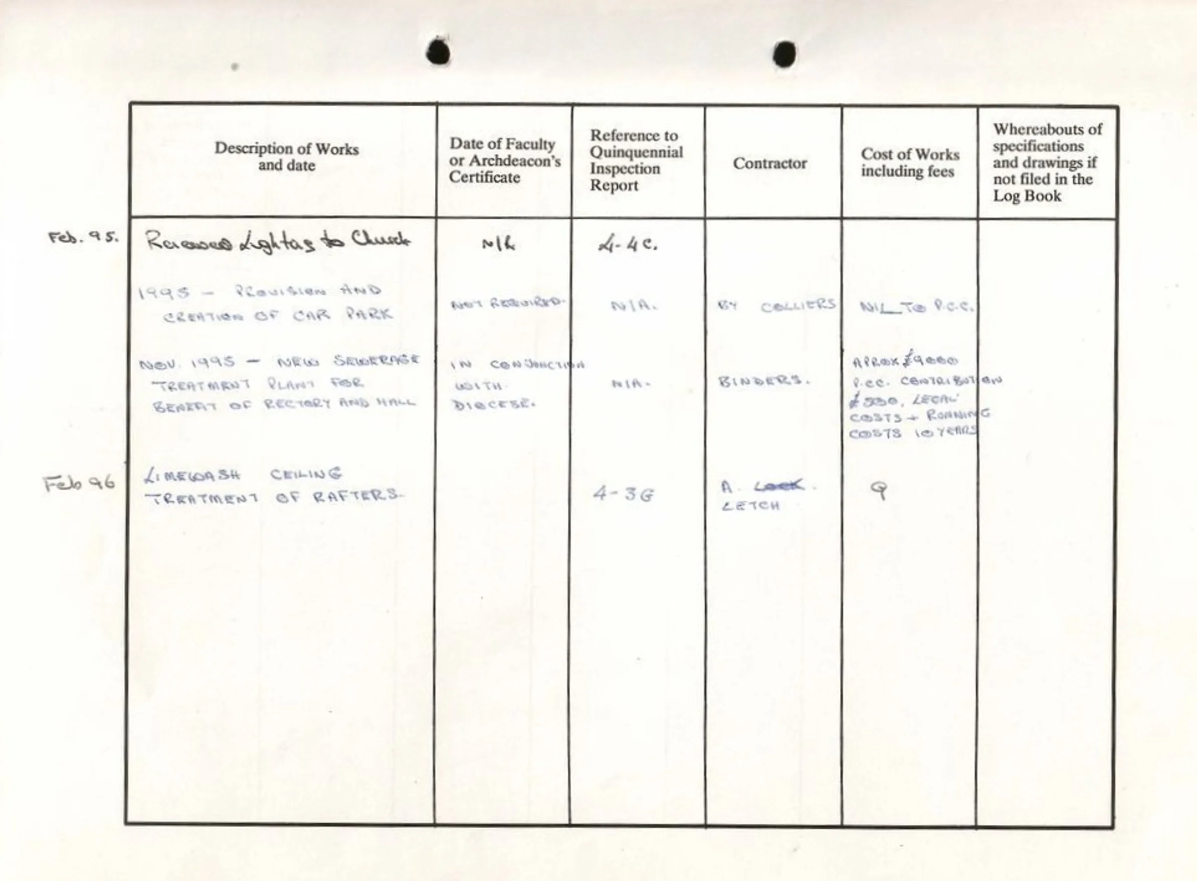 St Andrew's Church log book February 1995 to February 1996.