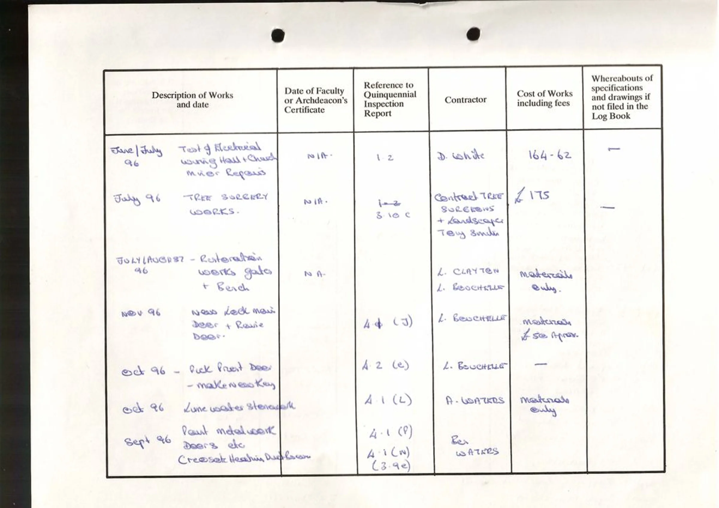 St Andrew's Church log book June to September 1996.