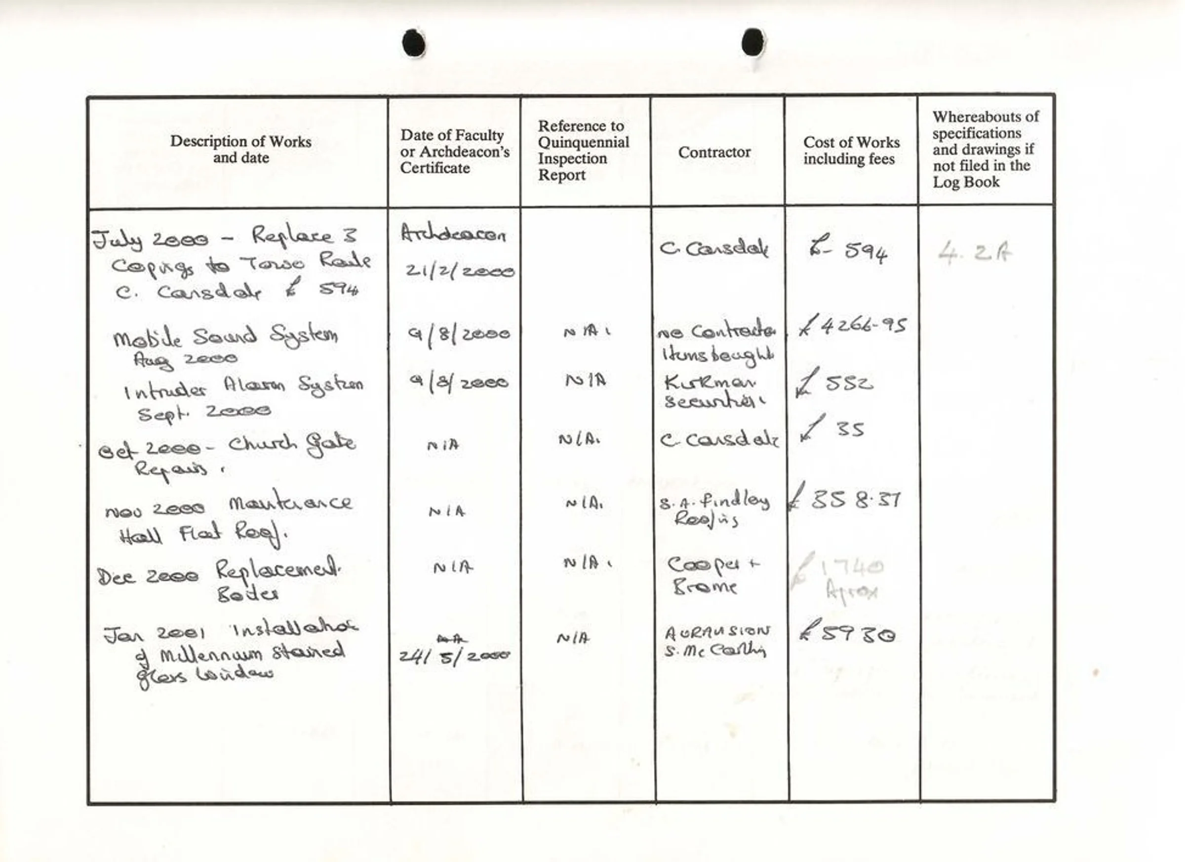 St Andrew's Church log book July 2000 to January 2001.