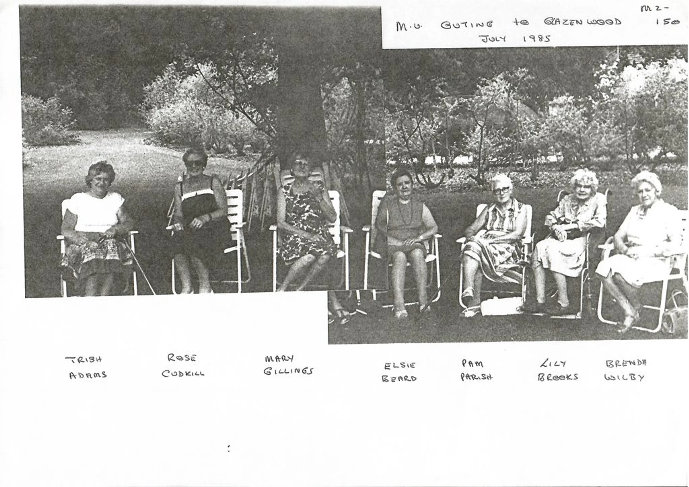 Black and white photographs of the Mother's Union outing to Glazenwood, July 1986.