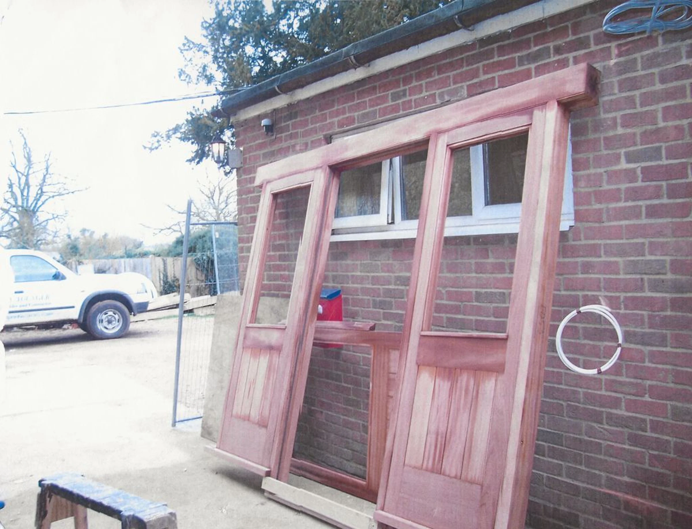 Photograph of the wooden panel for the new entrance to the Church Hall and vestry, during the 2007 reordering.