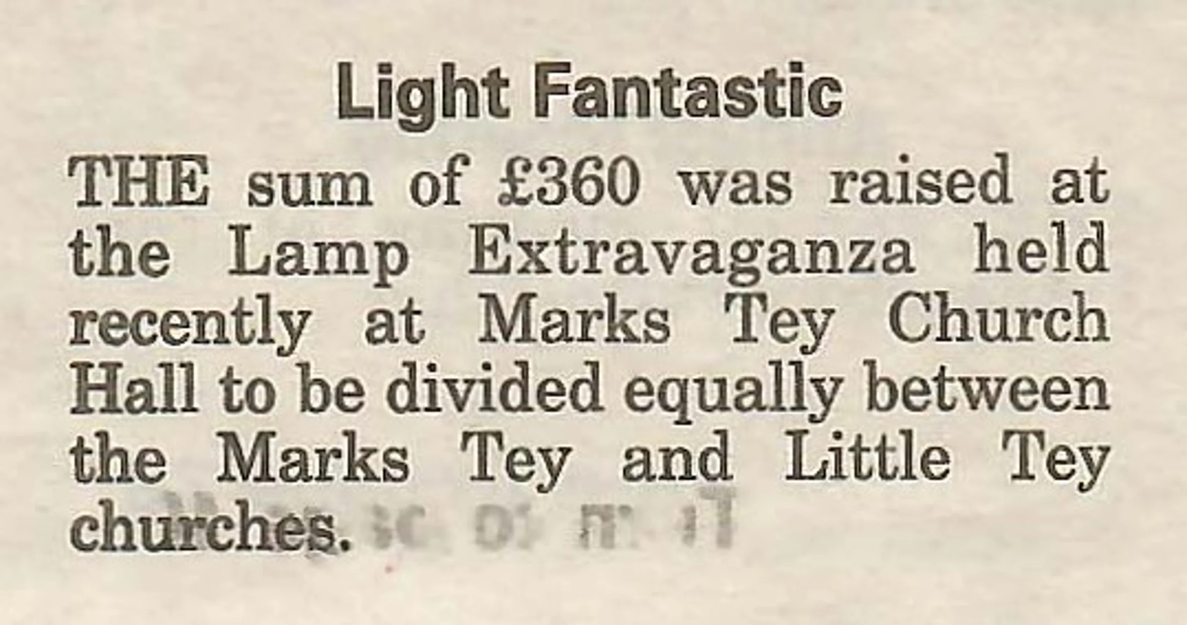 Village newspaper column reporting on the lamp exhibition at St Andrew’s church.