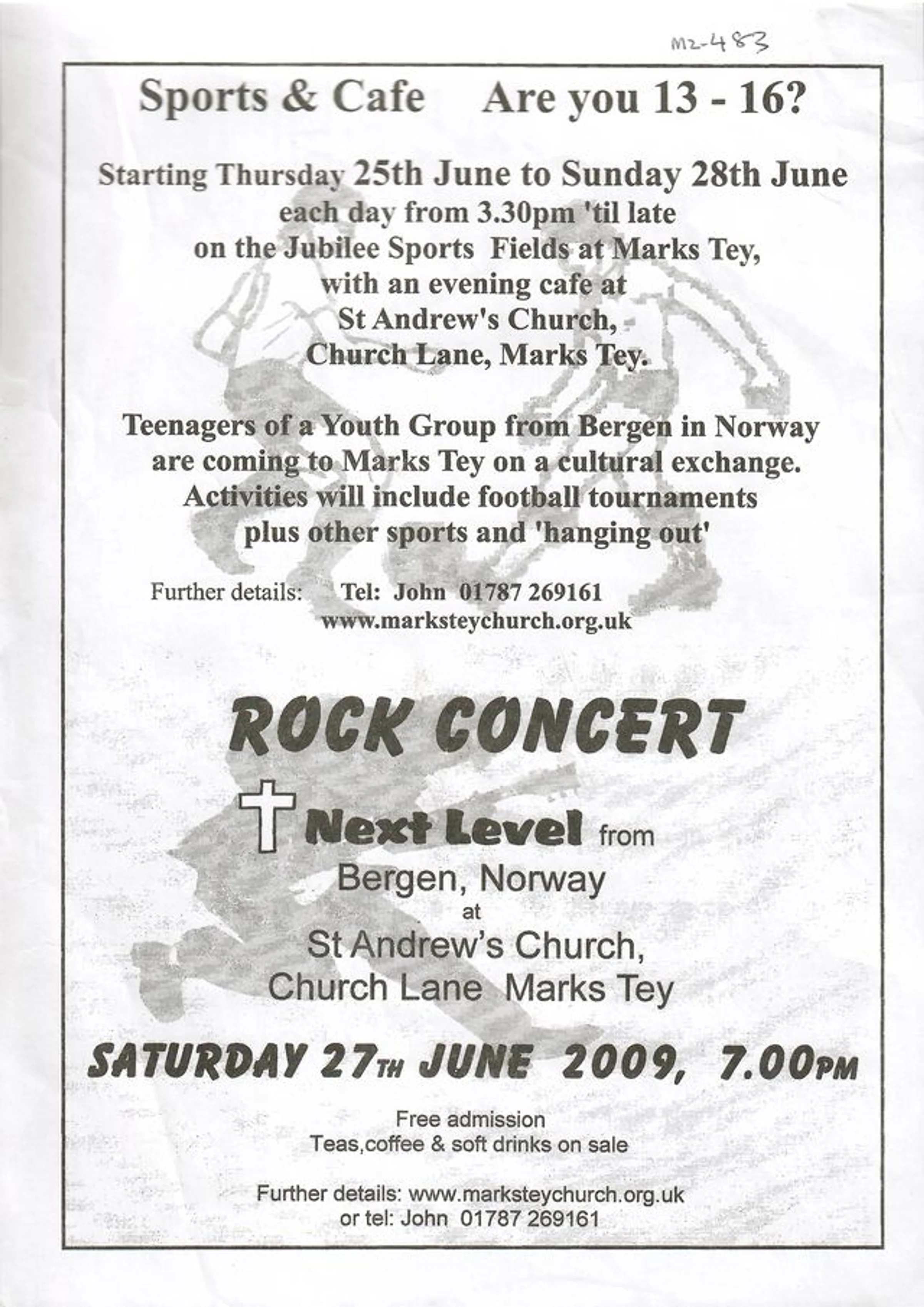 Poster for a concert by a Norwegian youth group in St Andrew's Church, 27th June 2009.